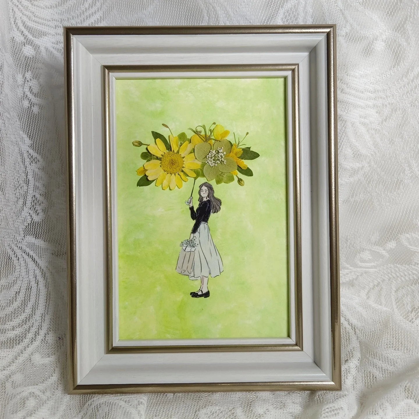 Add a touch of timeless natural beauty to your space with this vintage-style handmade pressed flower wall art — featuring cheerful yellow sunflowers and lush green leaves in a charming layered design.