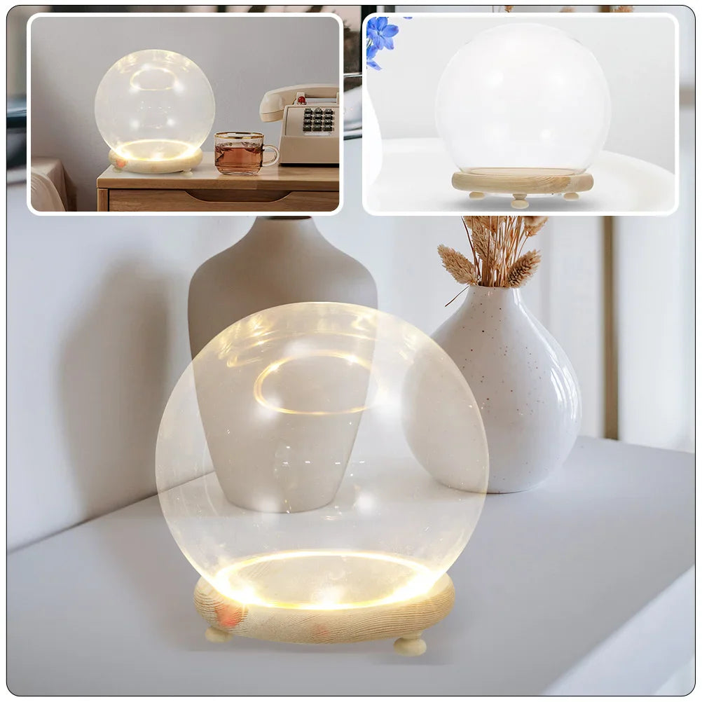 Elevate your space with this 10cm clear glass dome display case, featuring a natural wood base and built-in LED lighting — ideal for showcasing dried flowers, mini terrariums, or personalized decorations in any room or coffee shop.