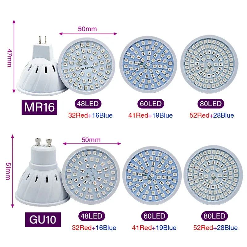 10Pcs Full Spectrum LED Grow Bulbs – Phyto Lamp Set for Indoor Plants (E27/E14/MR16/GU10, 220V)