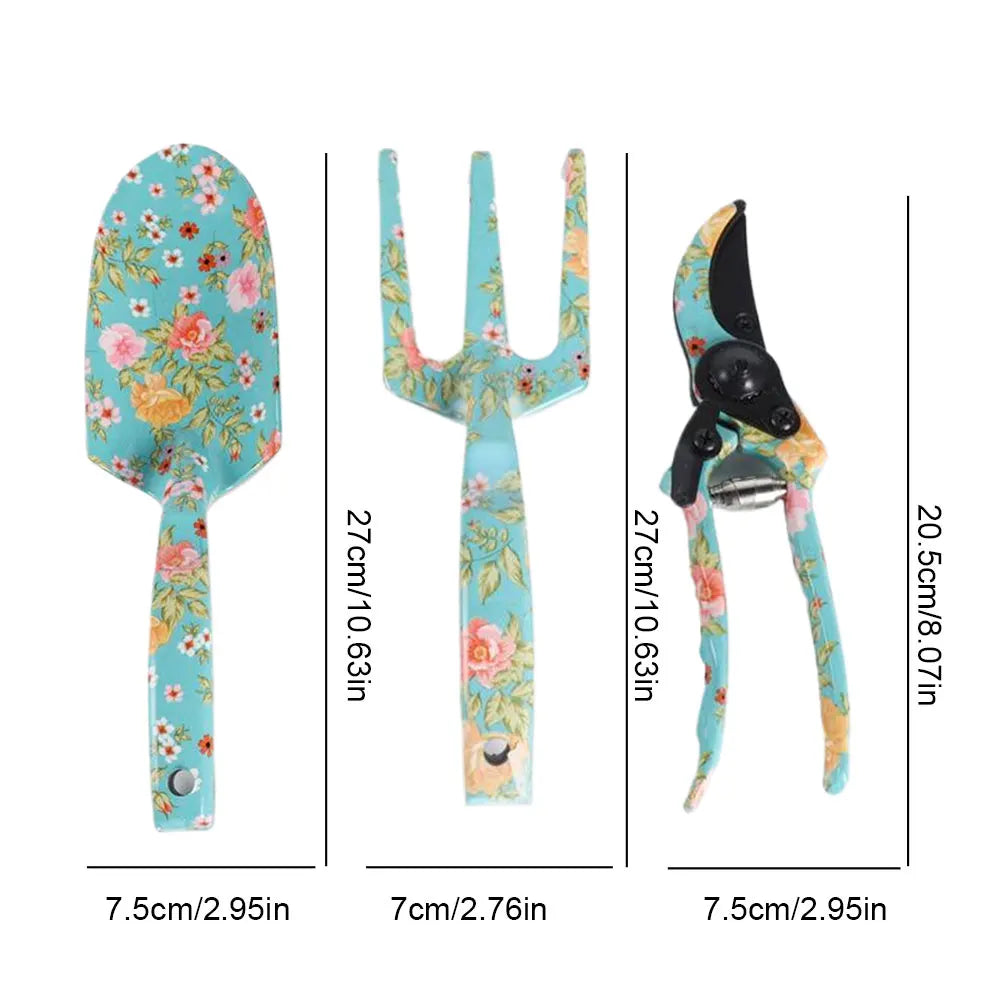 3-Piece Printed Garden Tool Set – Floral Design Hand Rake, Pruning Shear & Trowel