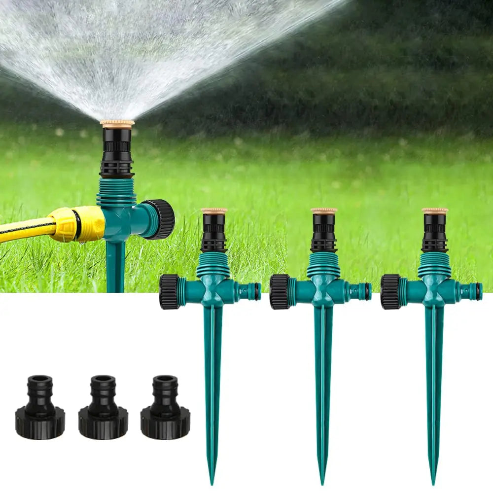 360° Rotating Garden Sprinklers – 3-Pack Adjustable Water Sprayers for Lawn & Plants, Automatic Irrigation System (Green)