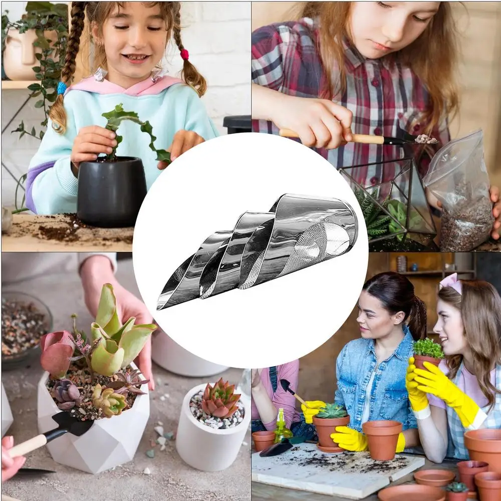 Designed for precision and durability, this 3-piece stainless steel soil scoop set is perfect for indoor plants, bonsai care, and small-scale gardening tasks.