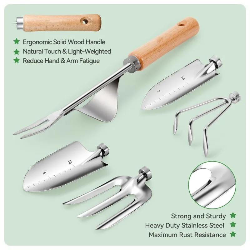 • Lightweight yet sturdy tools designed for digging, planting, pruning, and weeding