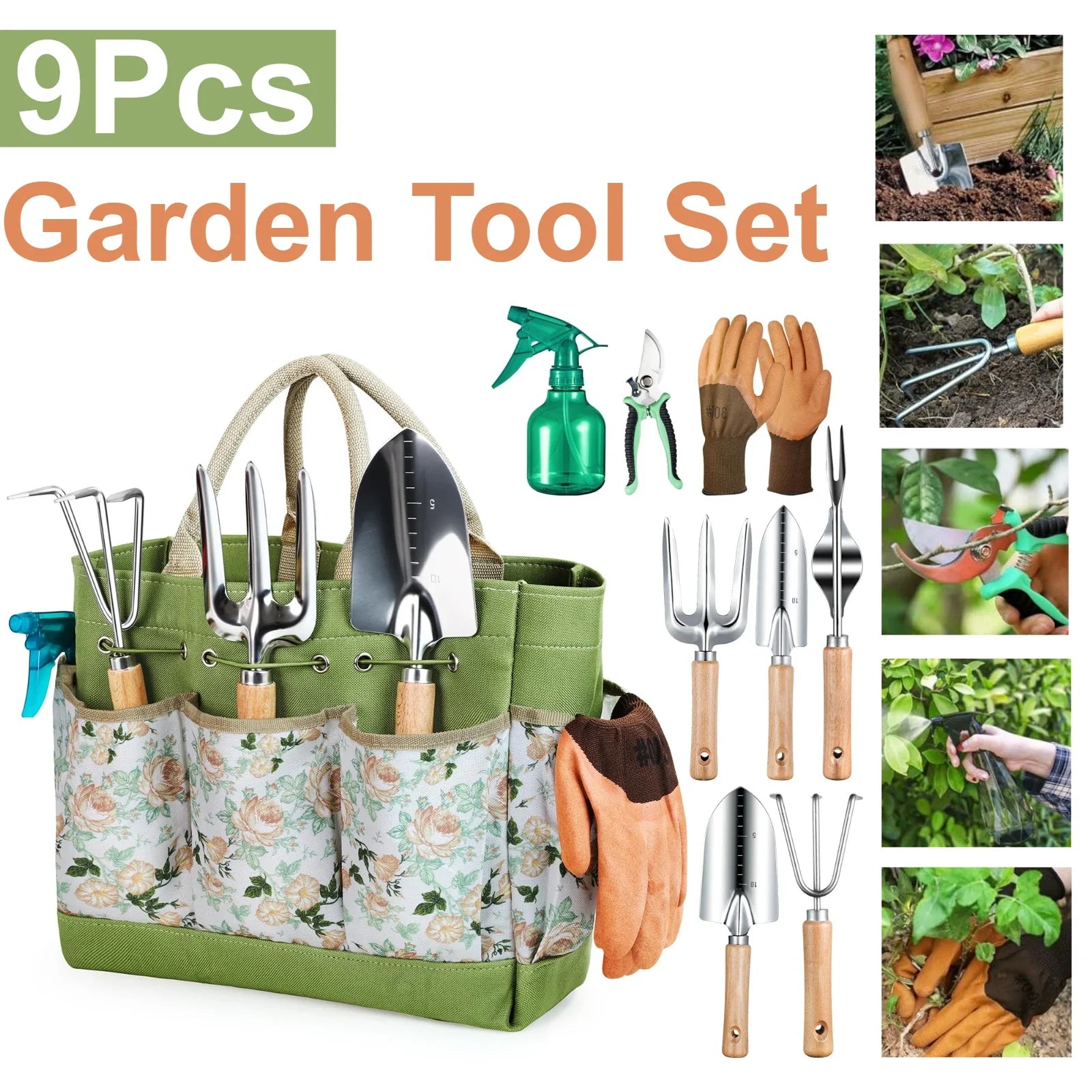 9Pcs Gardening Tools Set – With Fashionable & Durable Organizer Handbag | Ideal Gardening Gift for Women