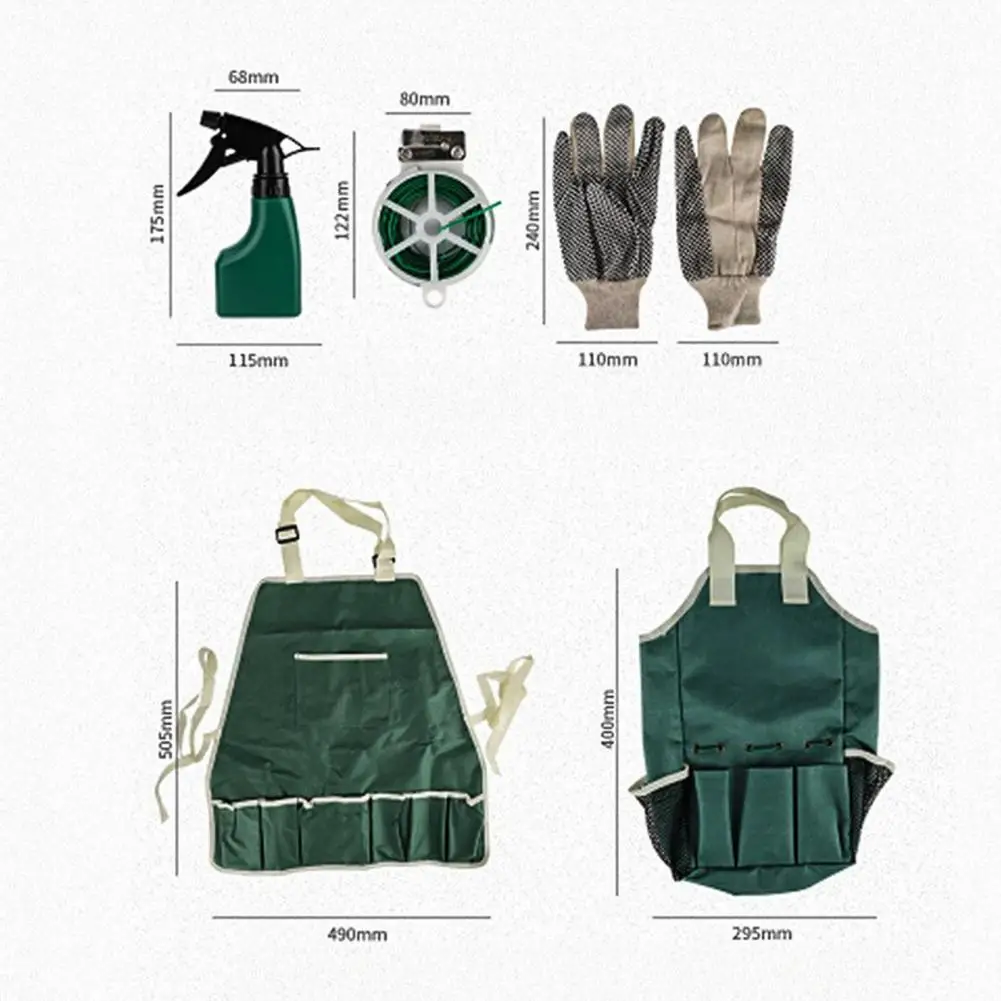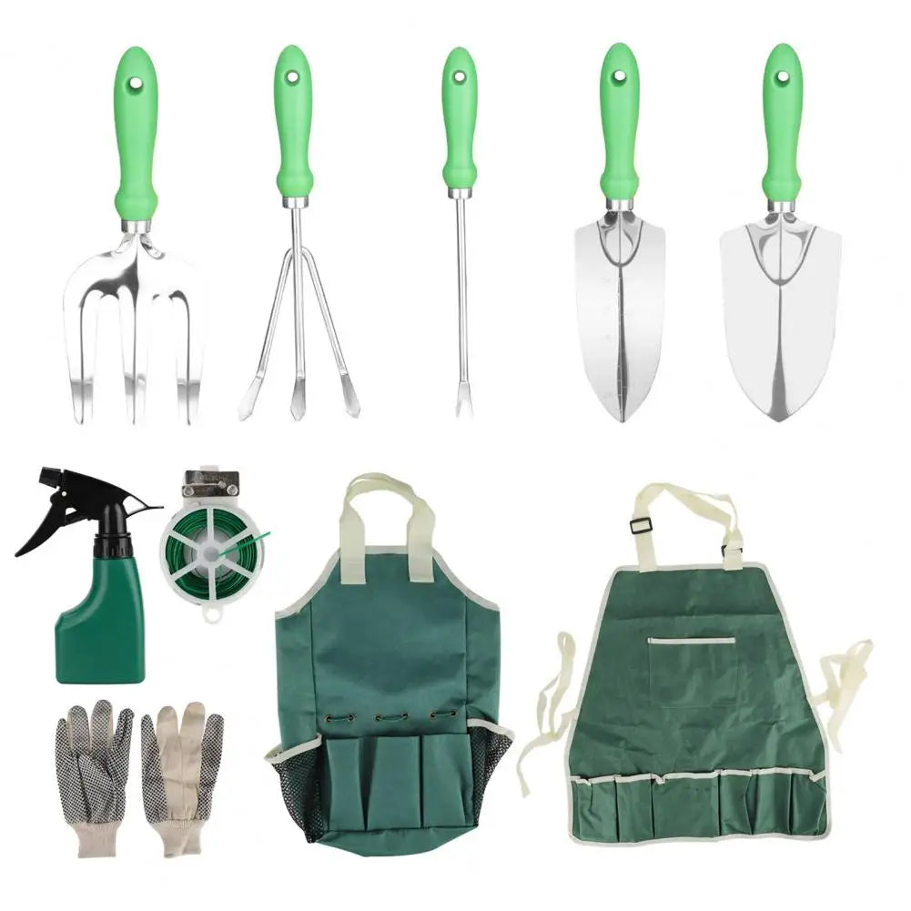 Includes essential tools: hand trowel, transplanter, pruner, weeder, cultivator, and hand rake