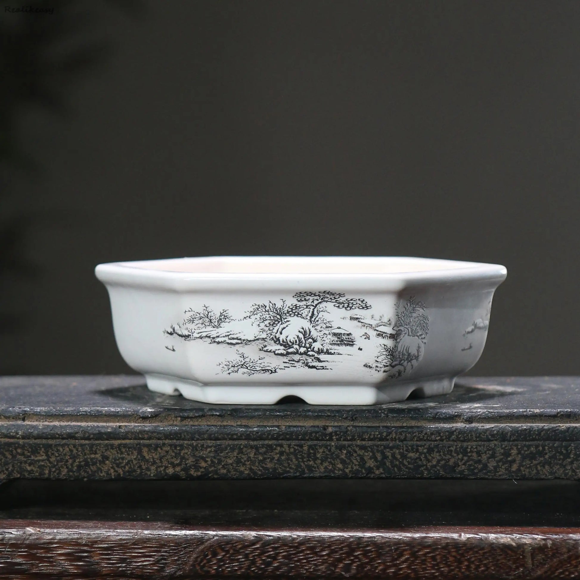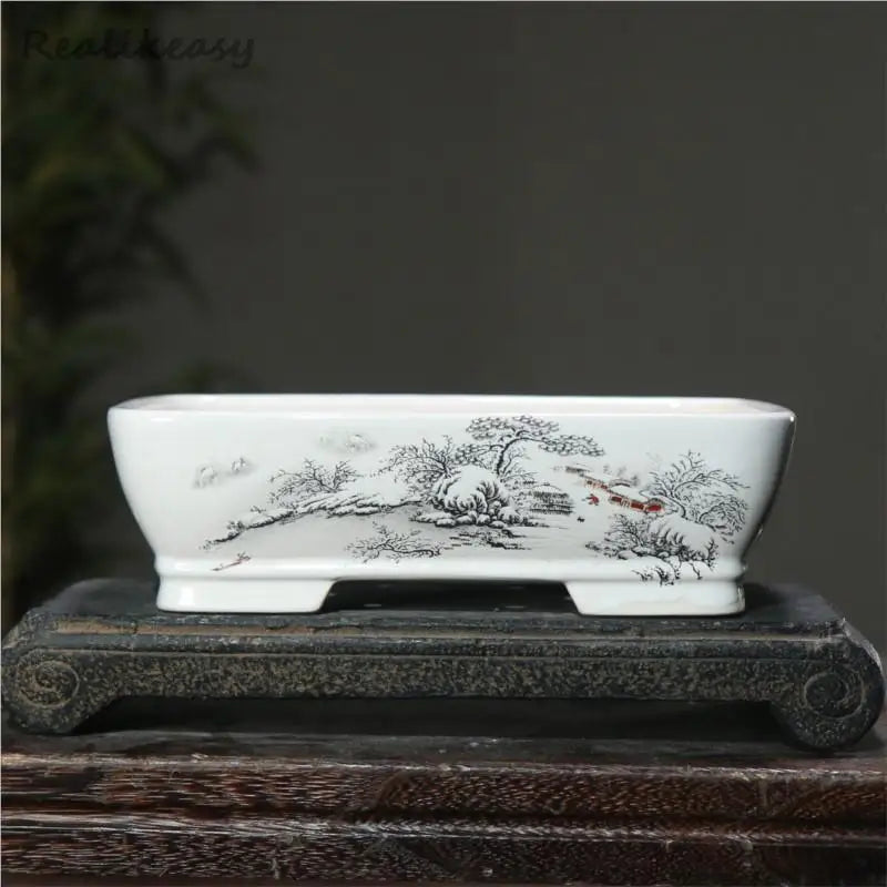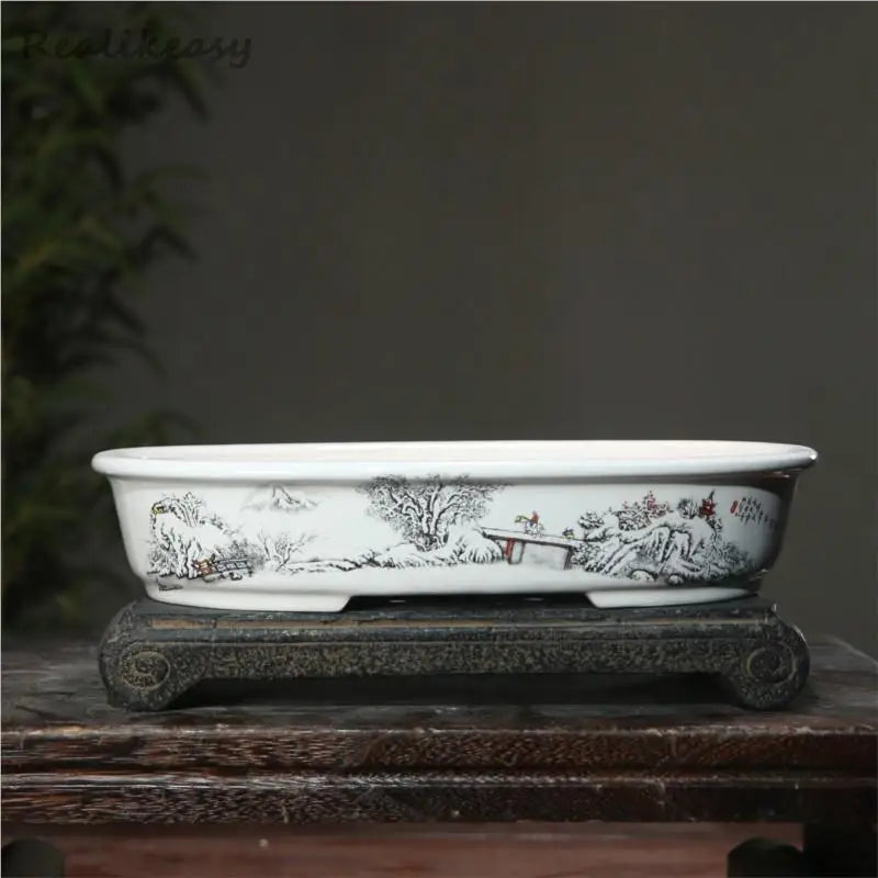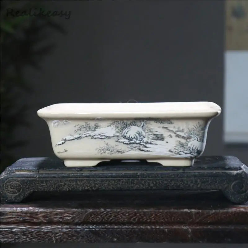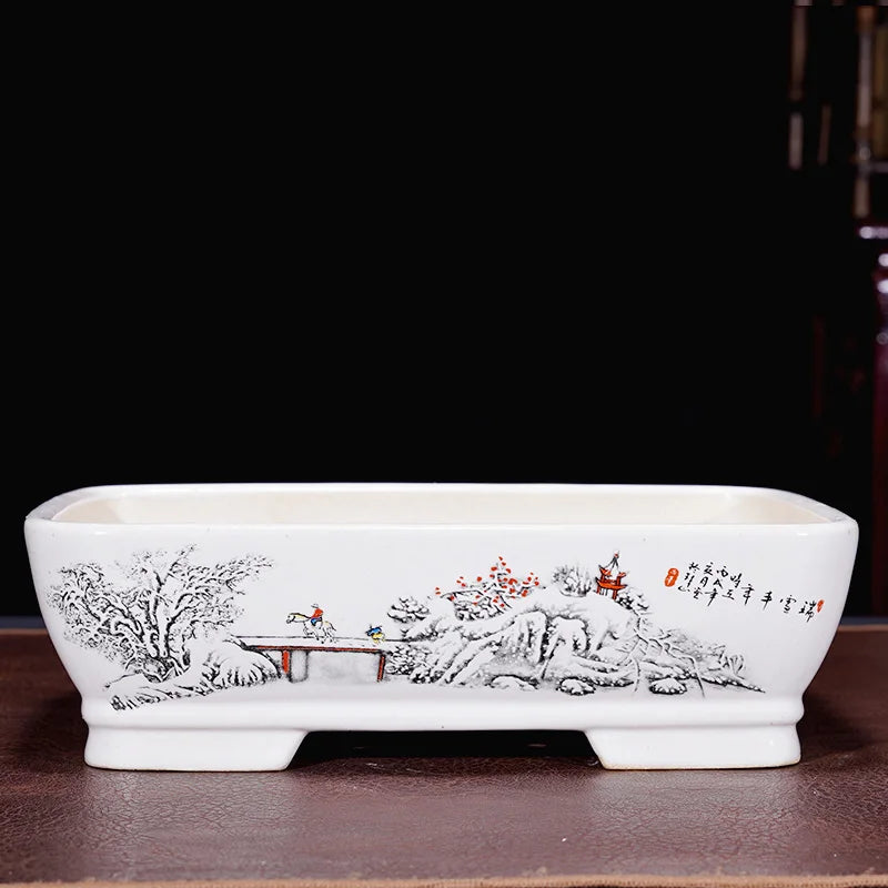 Showcase your bonsai or succulents with this traditional purple sand ceramic flower pot — a handmade piece inspired by classic Chinese landscape artistry.