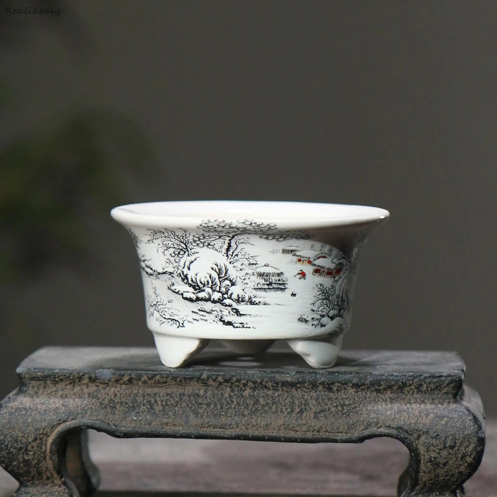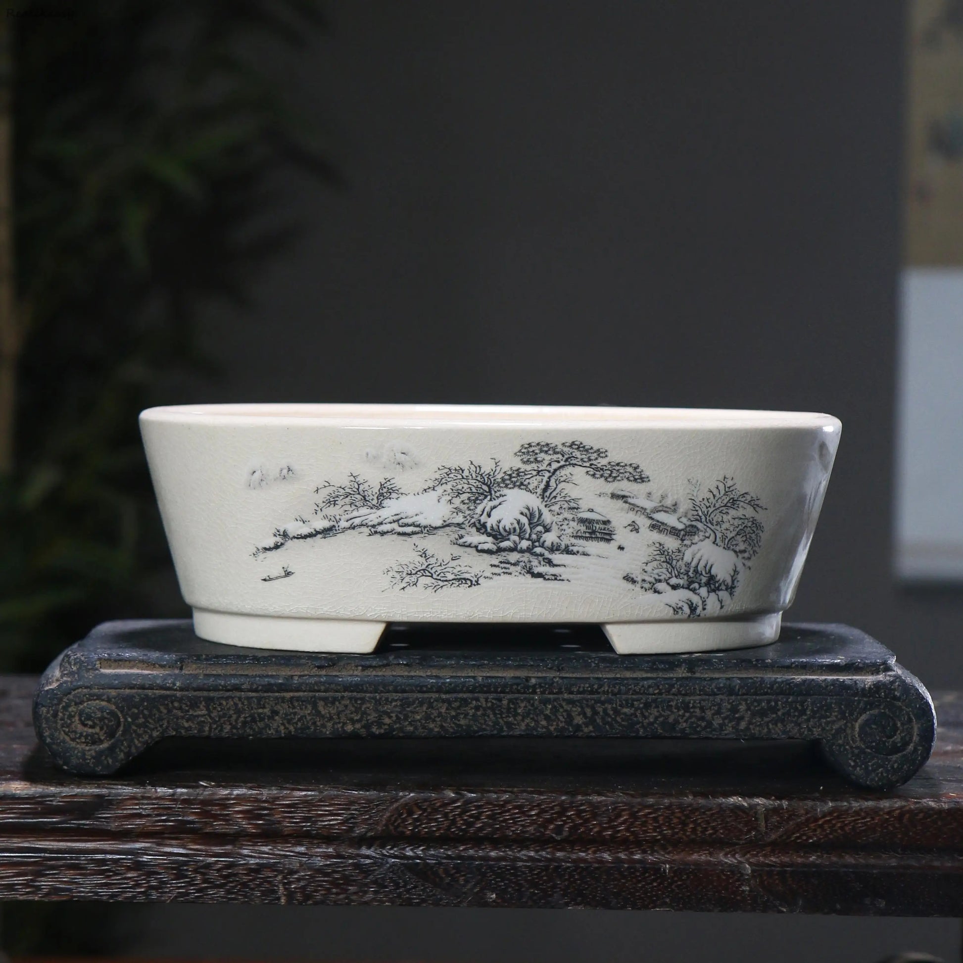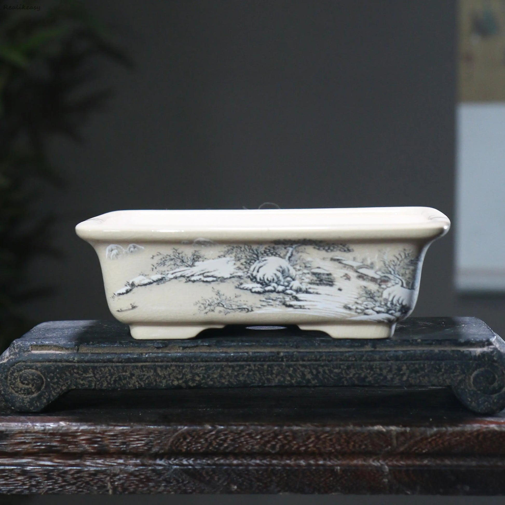 6-Size Purple Sand Ceramic Bonsai Pot – Handmade Chinese Landscape Succulent Planter (LE302)