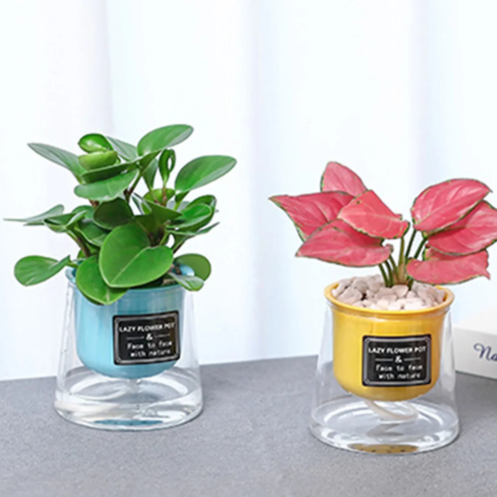 Lazy Hydroponic Flower Pot – Transparent Self-Watering Planter for Office & Desktop Decor