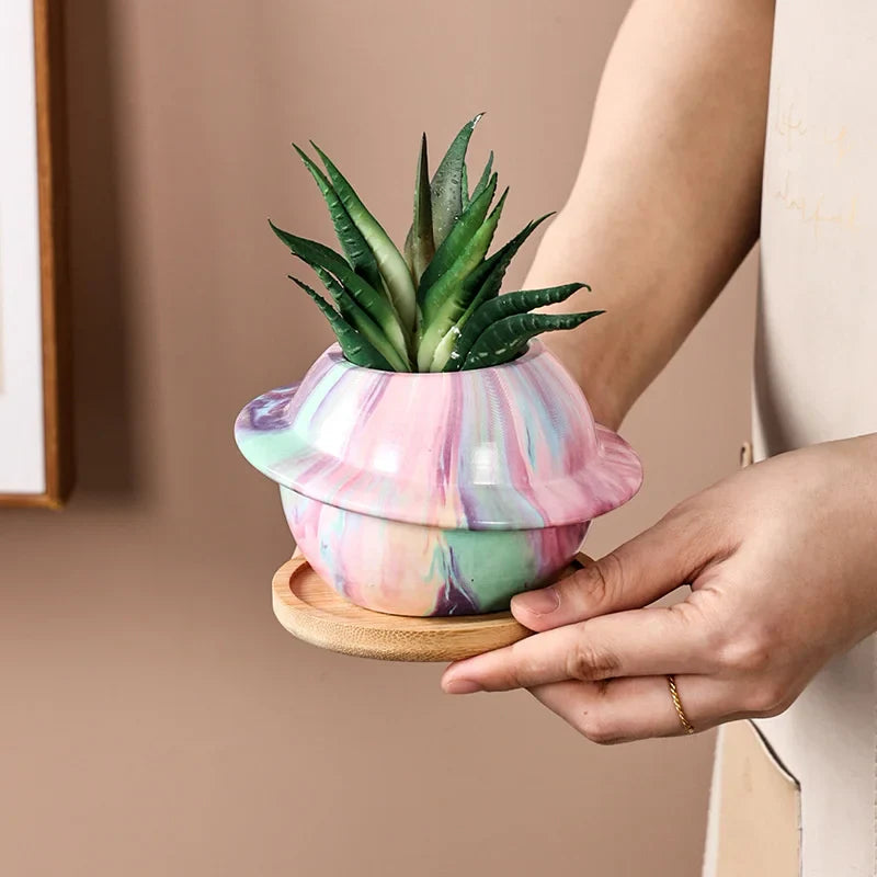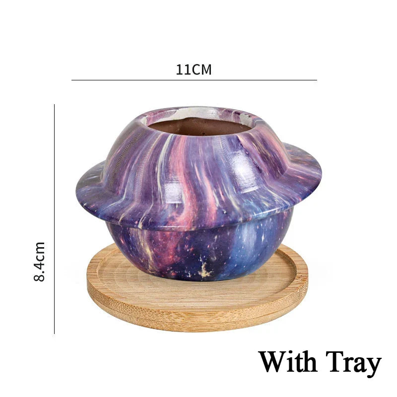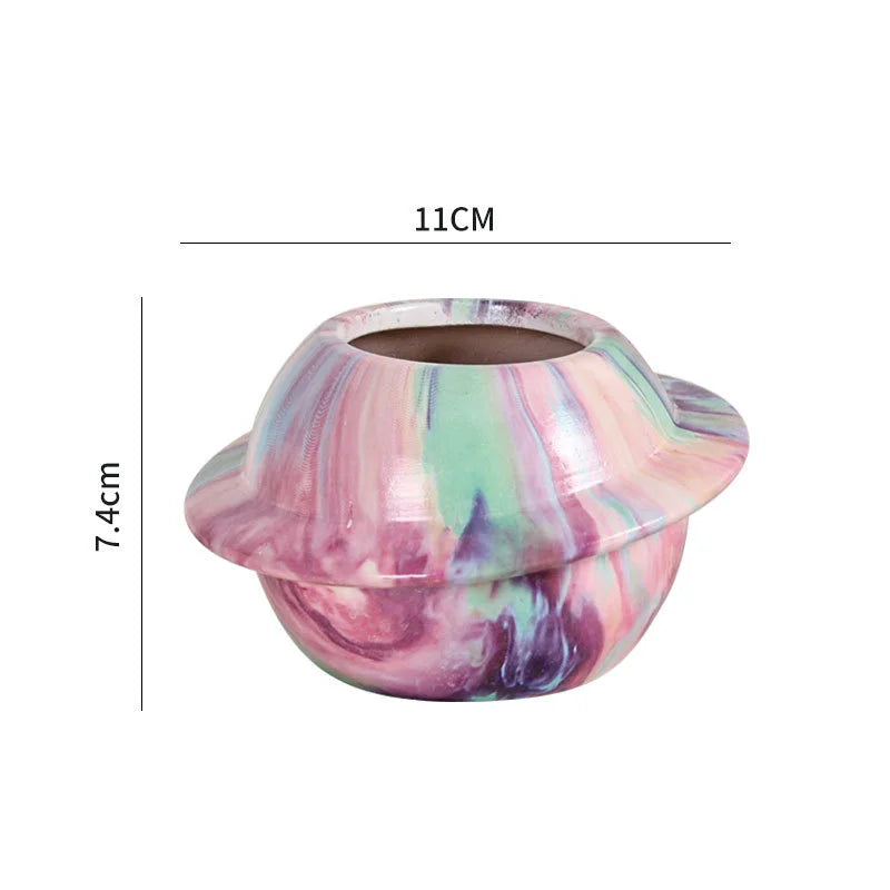 Add a cosmic touch to your garden or desk with this planet-inspired ceramic flowerpot — a whimsical and soft-modeled design perfect for succulents and small plants.