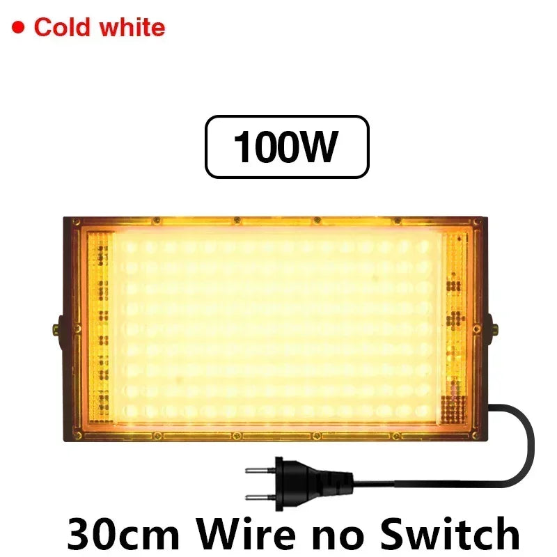 Durable aluminum alloy housing, high-efficiency LED chips, and water-resistant floodlight casing, compatible with 220V AC power.
