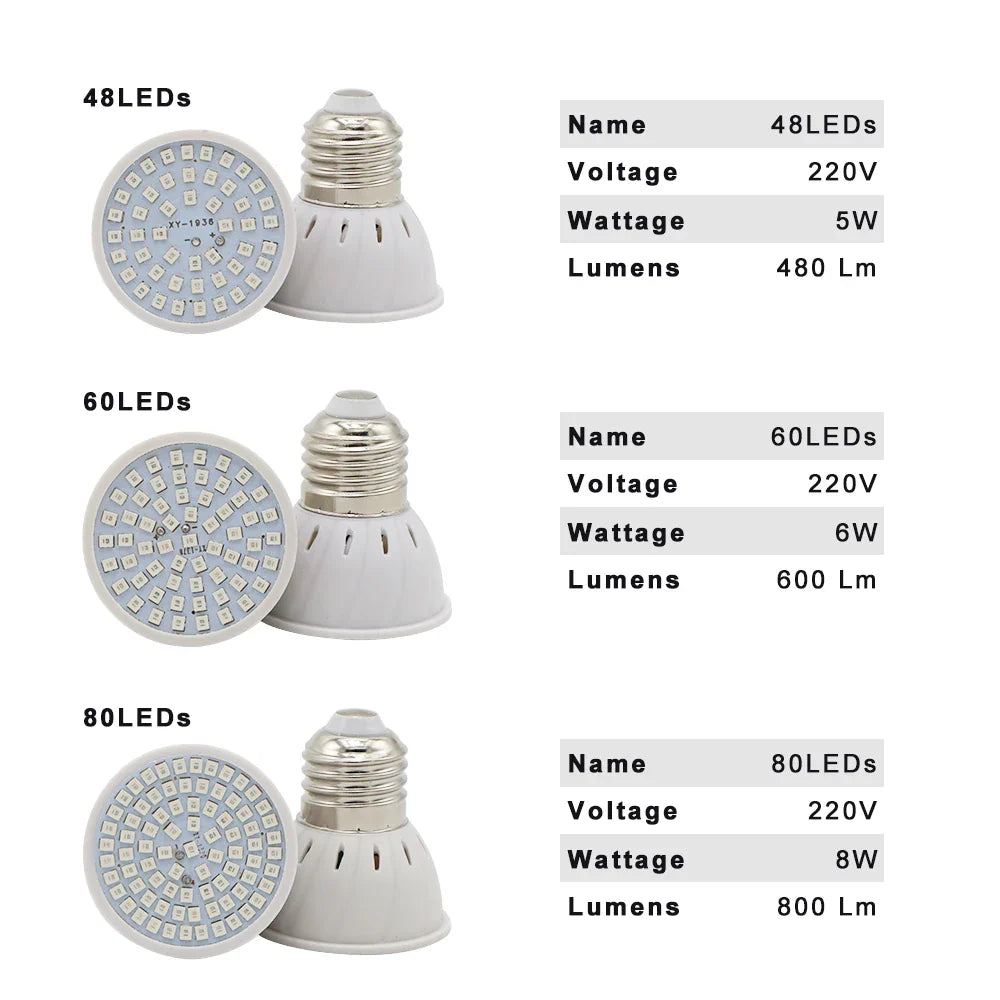 LED Plant Grow Light Bulb – 60/80 LEDs Full Spectrum Growing Lamp (E27/E14/MR16/GU10)