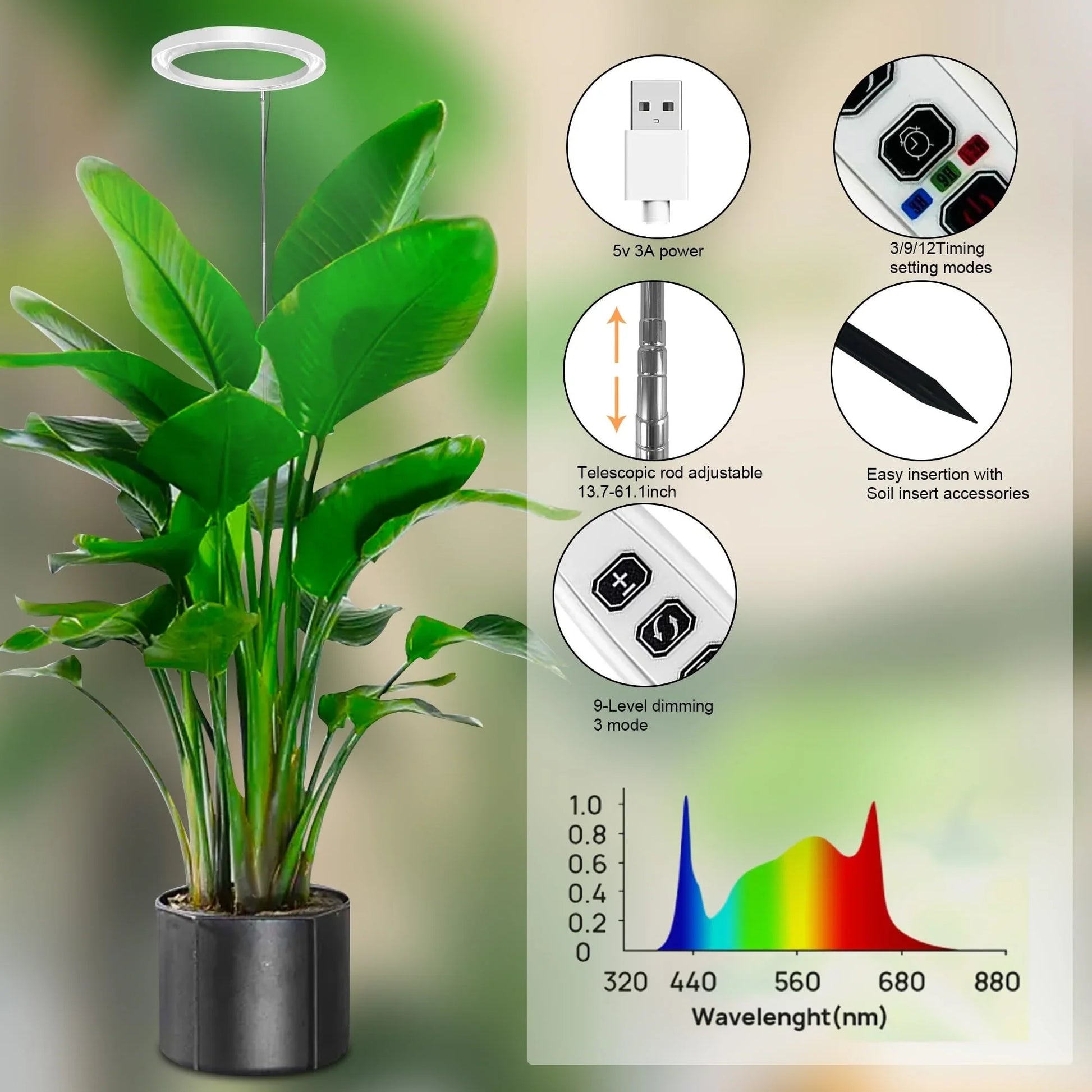 Auto timer function with 3H, 9H, and 12H settings for hands-free daily lighting cycles
