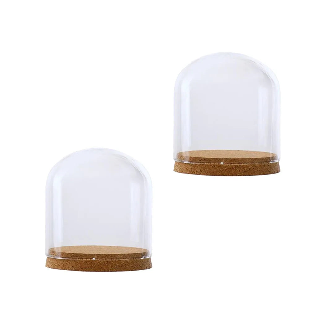 2Pcs 12x12cm Glass Dome Cover Cloche Bell Jar Succulents Terrariums with Wood Cork Wedding Parties Decorations Miniatures Craft
