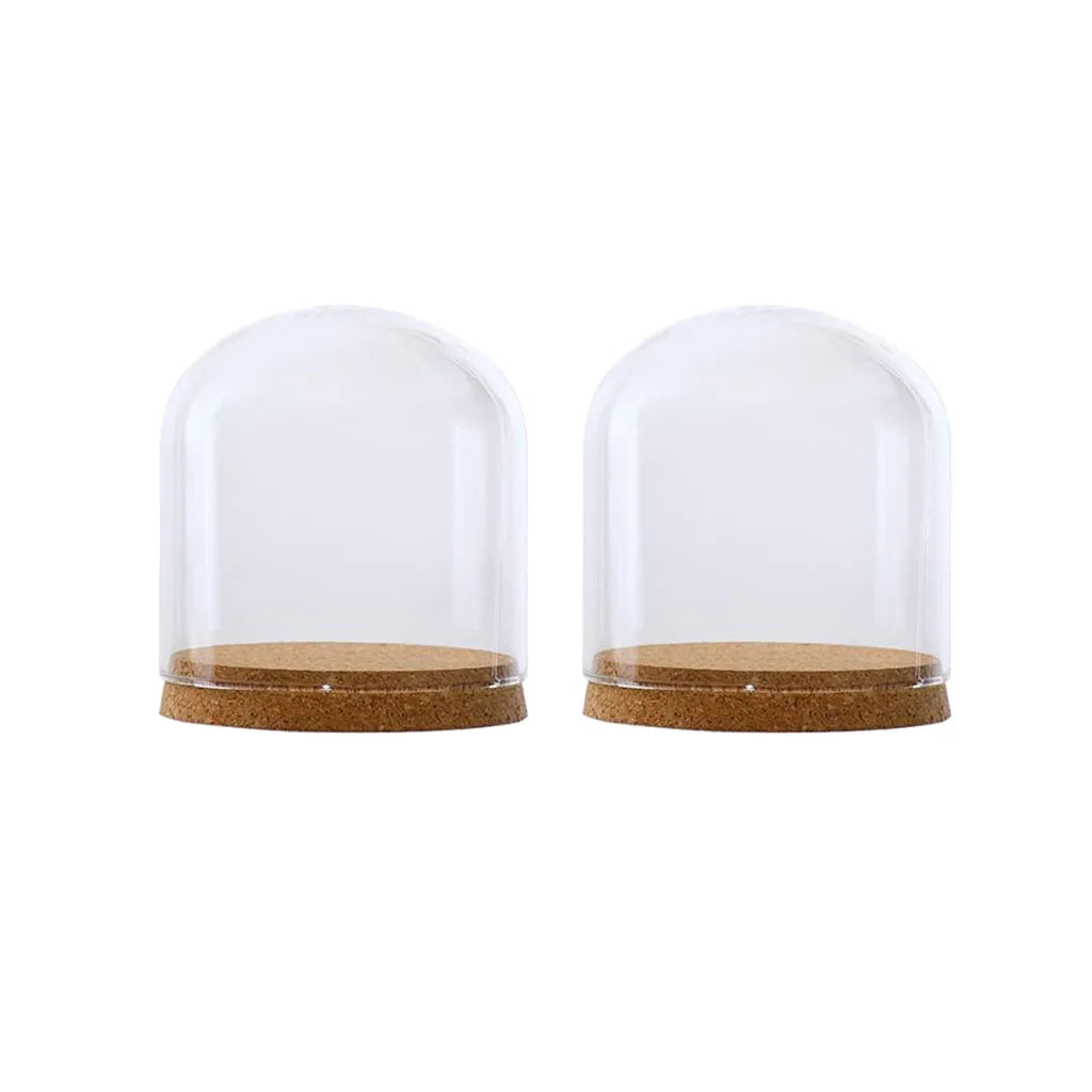 2Pcs 12x12cm Glass Dome Cover Cloche Bell Jar – Mini Terrariums with Wood Cork Base