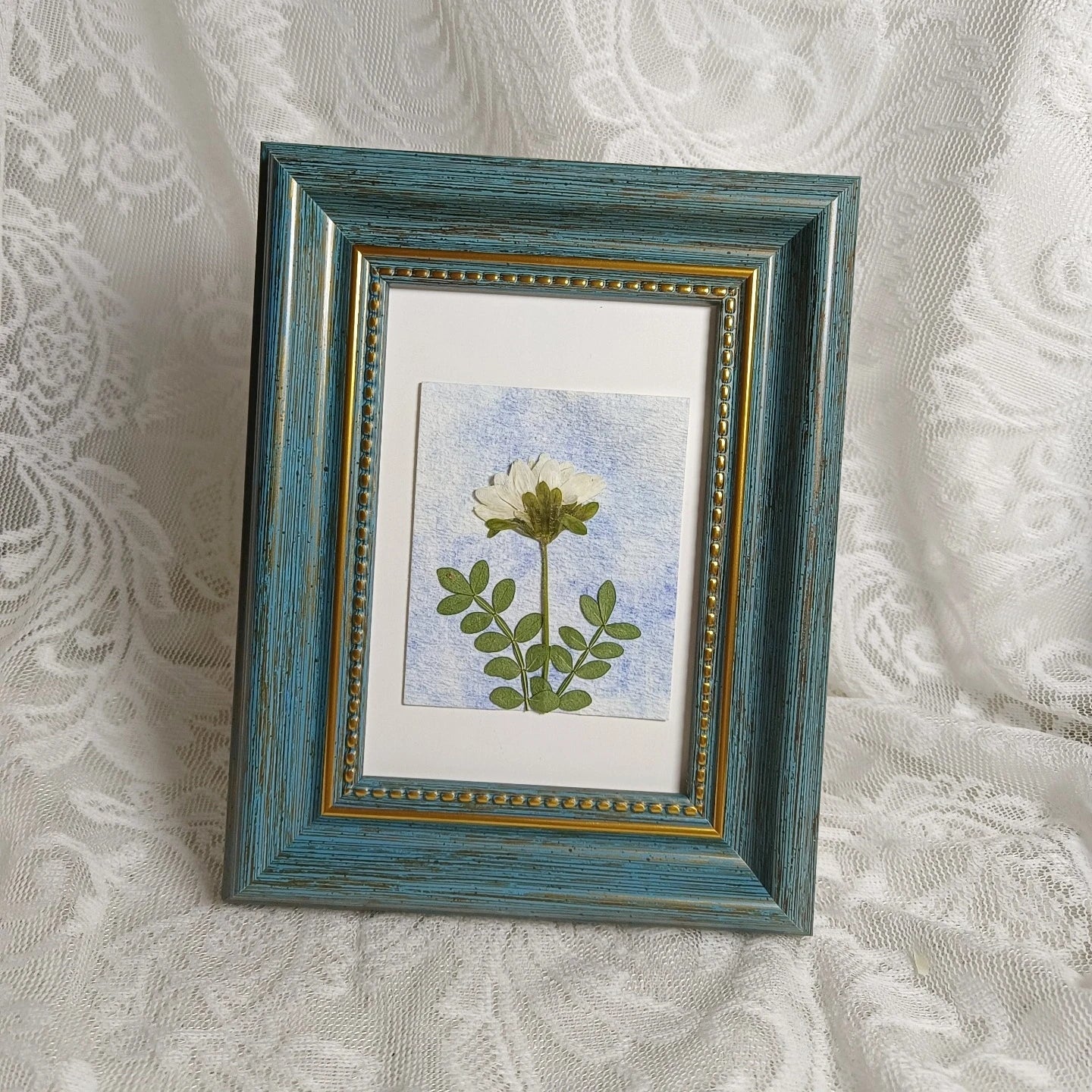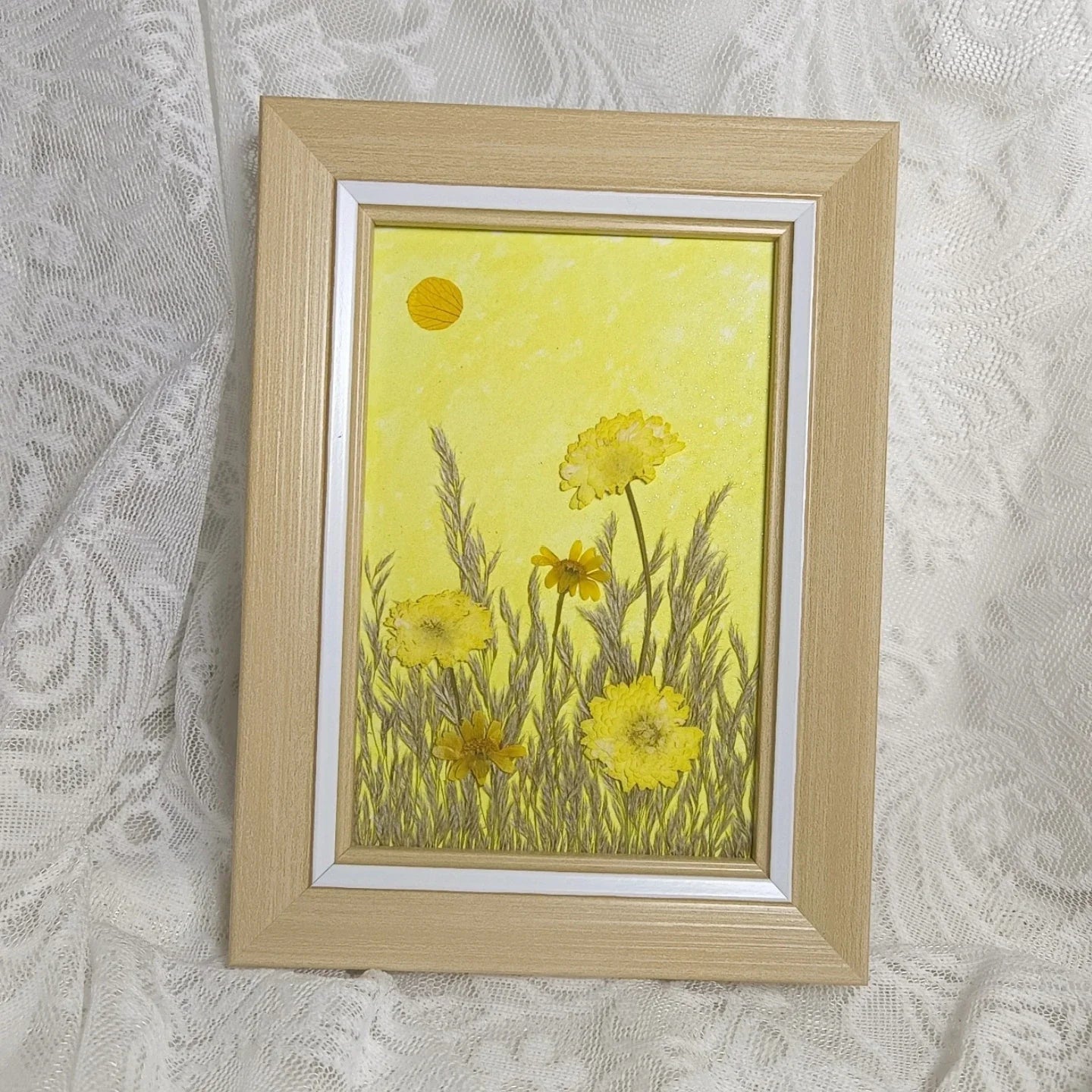 Natural pressed flowers, arranged by hand and encased in a glass-front wooden frame for lasting preservation and elegance.