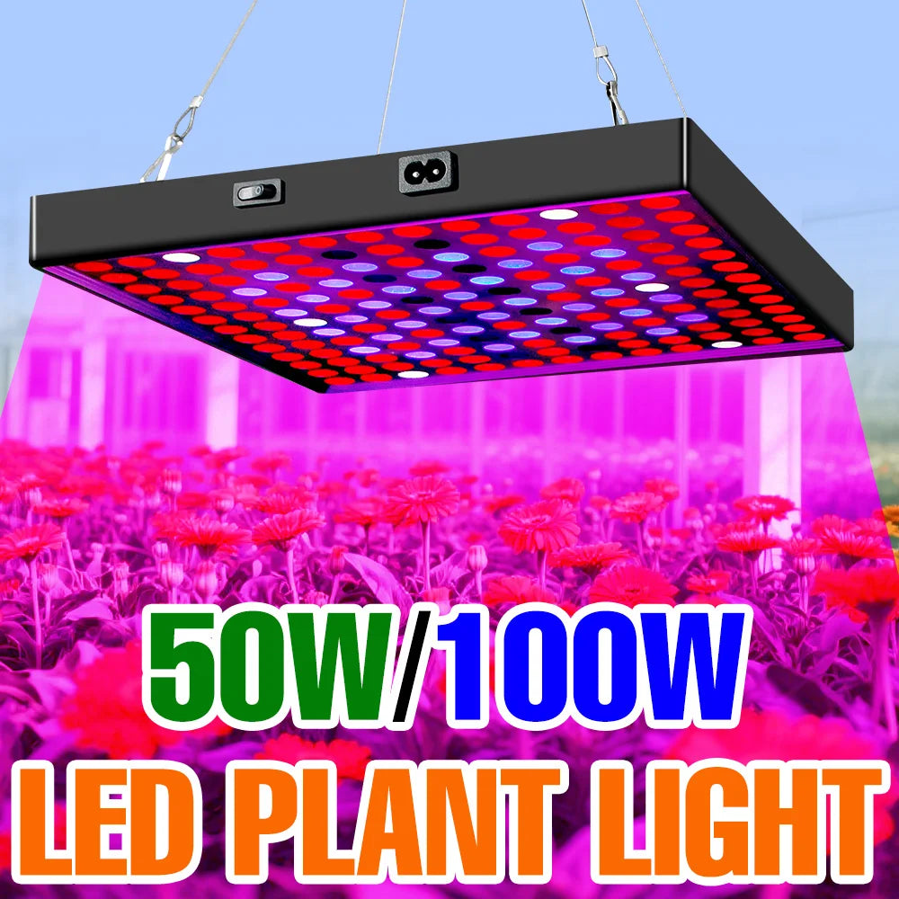 Boost your plant growth with this 100W LED Quantum Board Grow Light, offering full spectrum lighting ideal for succulents, flowers, potted plants, and hydroponic systems.