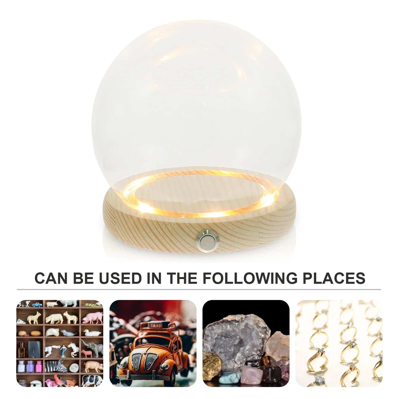 12Pcs Glowing Wooden Base Glass Dome Display Covers – Eternal Flower & Ornament Case