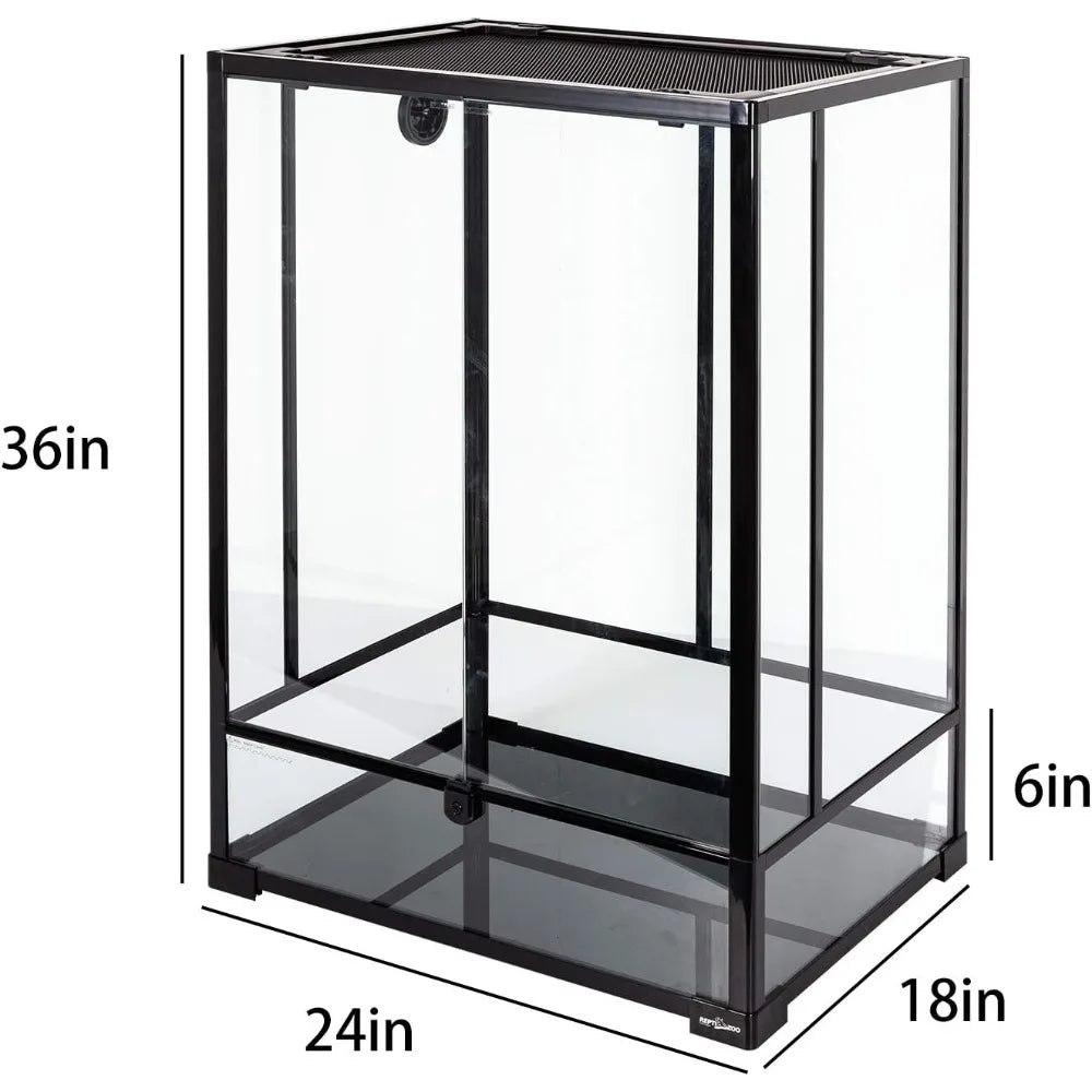 Create the perfect vertical habitat for your reptile or amphibian with this 24" x 18" x 36" tall glass terrarium. Designed for rainforest species, it features a sleek double-hinge door for easy access and optimal ventilation.