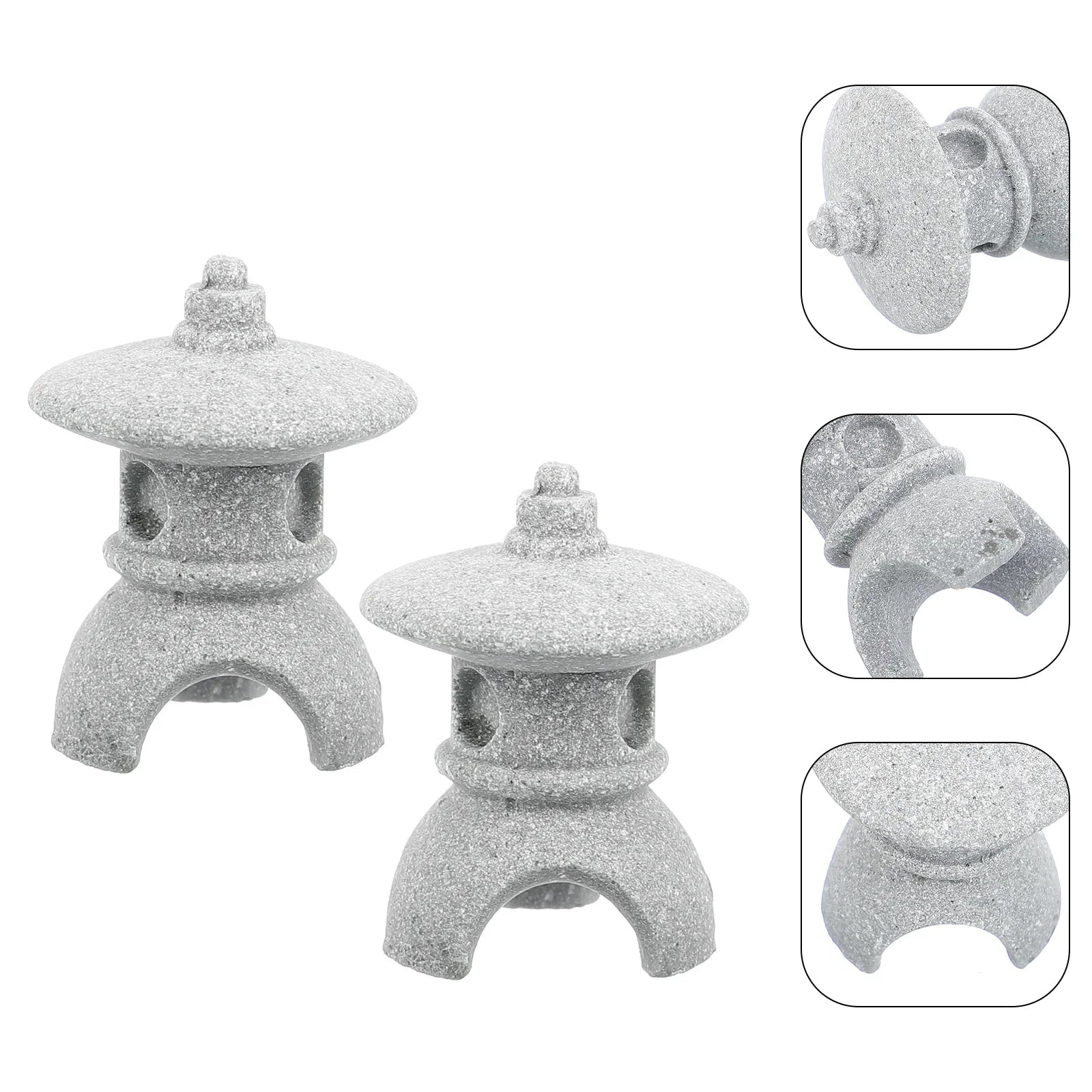 2Pcs Miniature Sandstone Pagoda Ornaments – Japanese Lantern Zen Garden Decorations