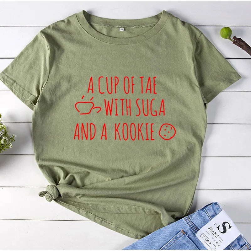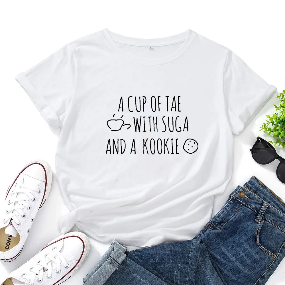 A CUP OF TAE WITH SUGA Graphic Tee – Women's Casual Cotton T-Shirt