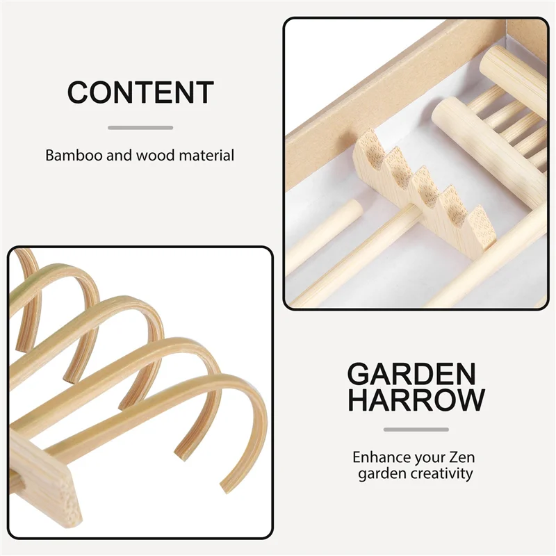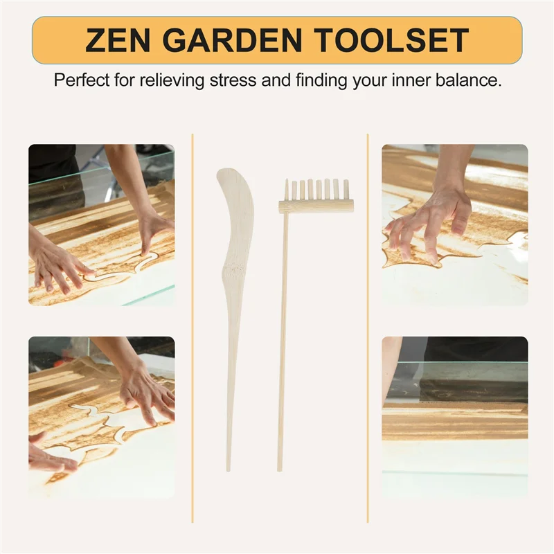 A11E Mini Japanese Zen Garden Rake Set – Bamboo Tool Kit for Sand Meditation & Desktop Decor