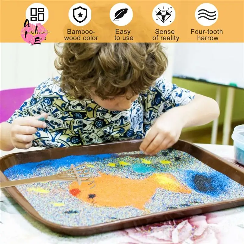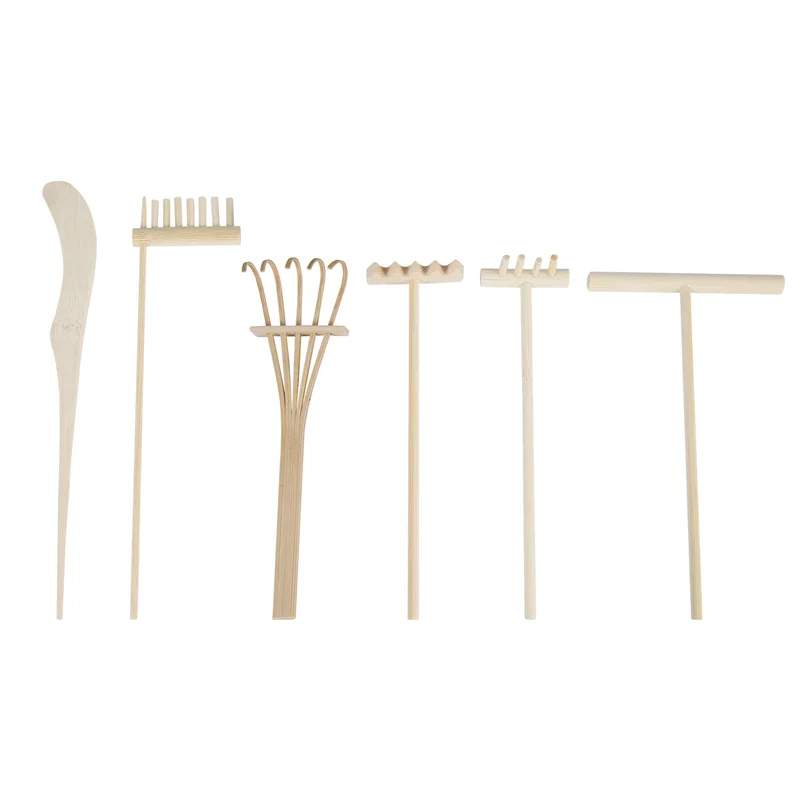 Includes multiple mini bamboo rakes and tools for creating patterns in sand