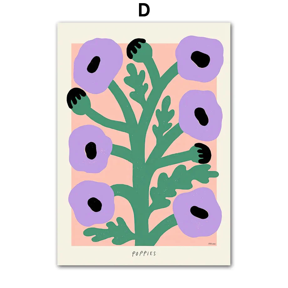Brighten your space with this Abstract Vase Floral Wall Art, featuring a modern flower market theme with leaves and blooms in soft tones — a perfect blend of minimalism and natural charm for any room.