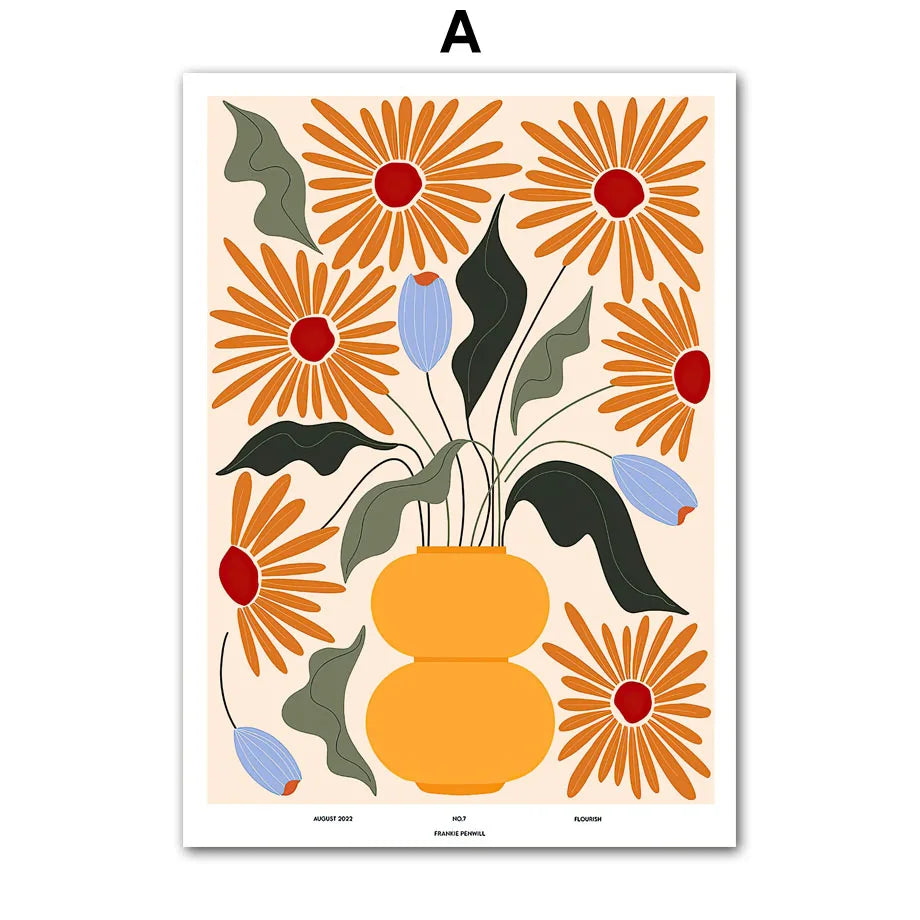 Abstract Vase Floral Wall Art – Flower Market Leaf Canvas Painting Poster