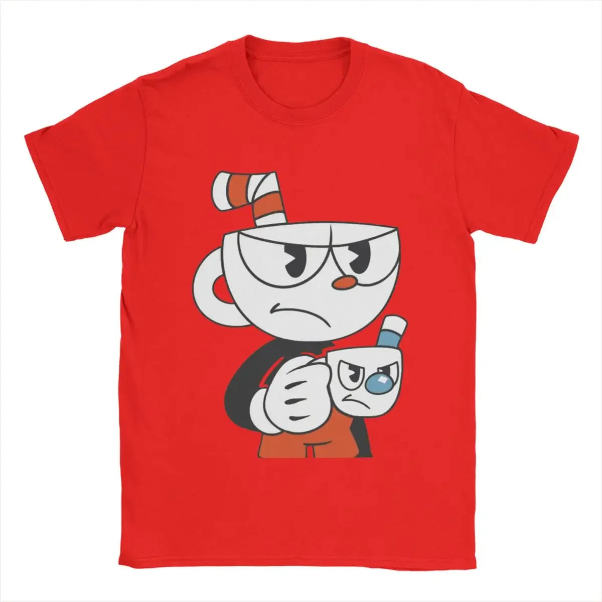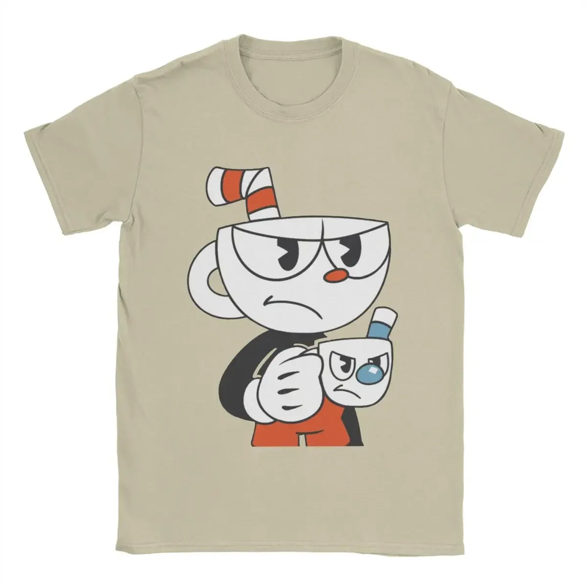 Amazing Cuphead and Mugman Angry T-Shirts – Pure Cotton Cartoon Tee for Men