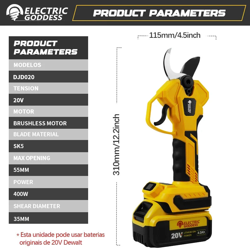 Brushless 55mm Electric Pruning Shears – Cordless Branch Cutter for Dewalt 20V Battery