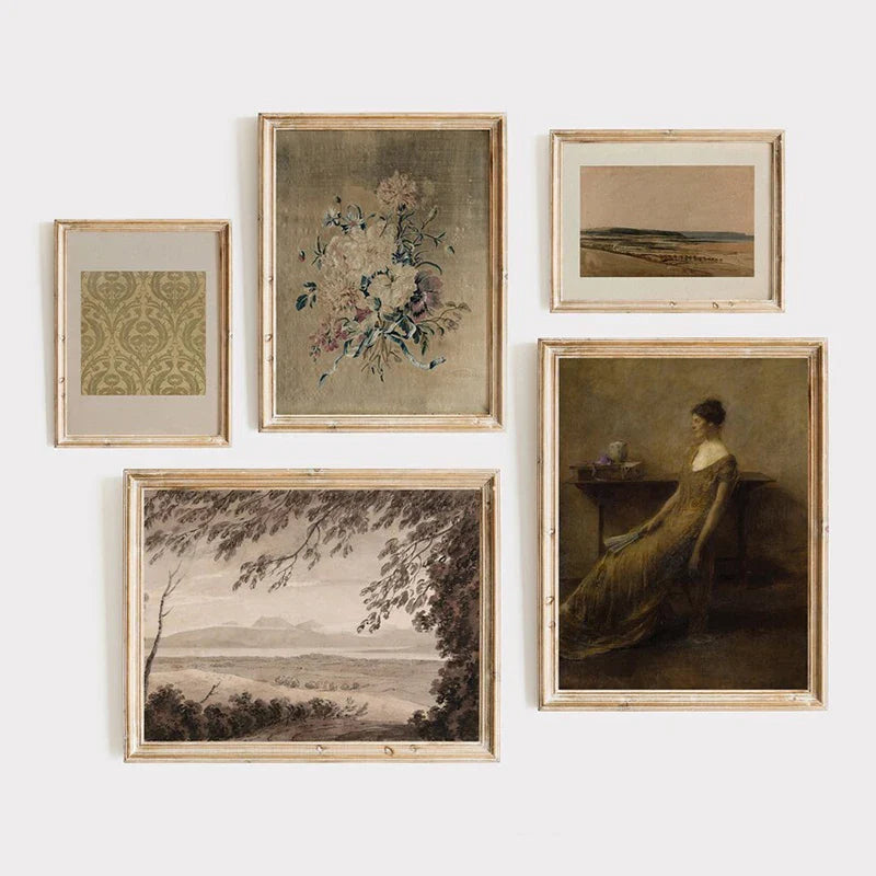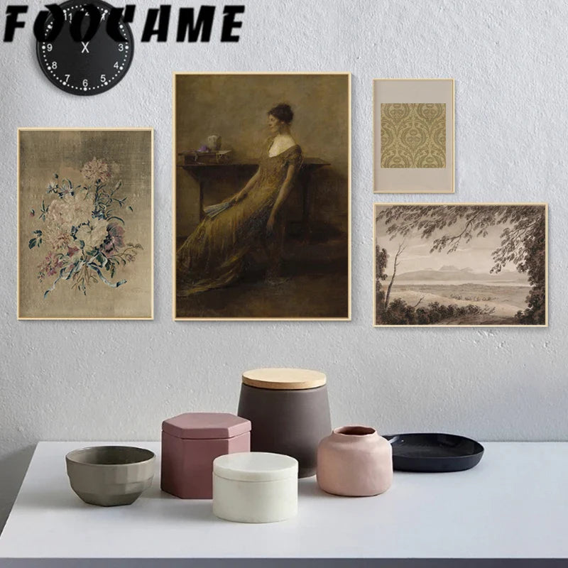 European Vintage Flower Landscape Canvas Art – Luxury Decorative Poster Print for Elegant Living Room Décor