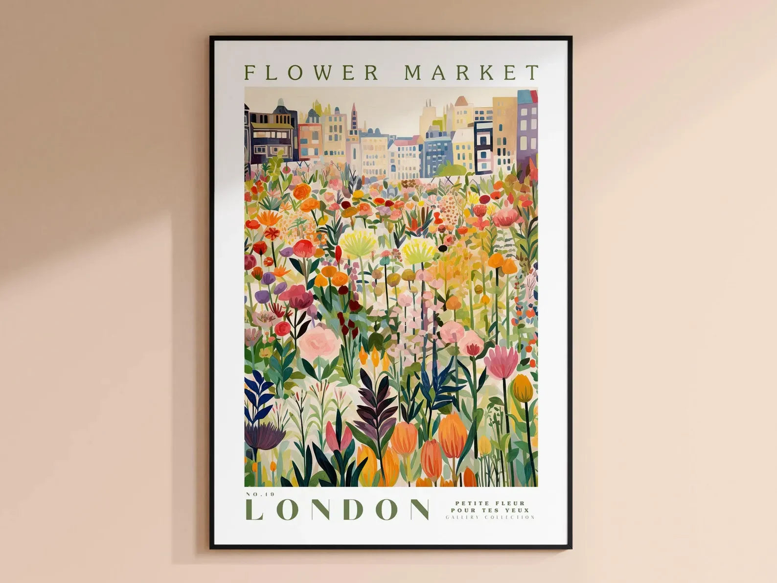 Celebrate the charm of London’s iconic flower markets with this Flower Market London Print – a vibrant fusion of botanical beauty and urban sophistication, perfect for trendy and nature-inspired interiors.