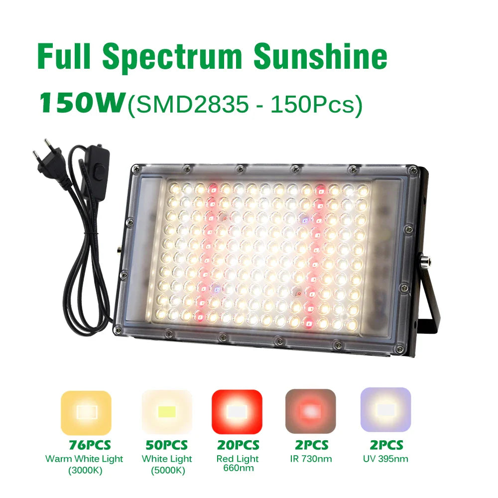 Enhance your indoor or greenhouse plant growth with this 50W or 100W Full Spectrum LED Grow Light! Designed to mimic natural sunlight, it delivers powerful, consistent light for healthy seedling, vegetative, and flowering stages.