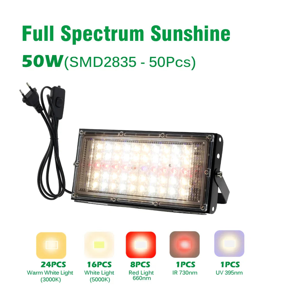 Full Spectrum LED Grow Light 50W/100W – Sunlight-Mimicking Phyto Lamp for Greenhouse & Hydroponic Plants