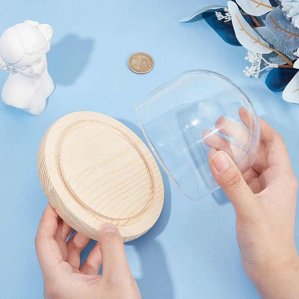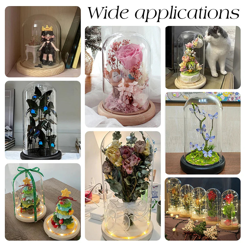Showcase your cherished items in style with this 125x95mm glass dome display case. Featuring a clean white wood base, it’s perfect for preserved flowers, collectibles, and DIY décor.