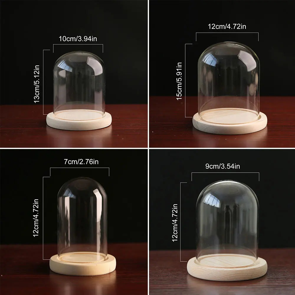Crystal-clear glass dome beautifully showcases preserved flowers, terrariums, or decorative items