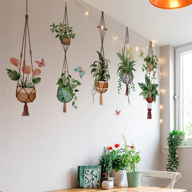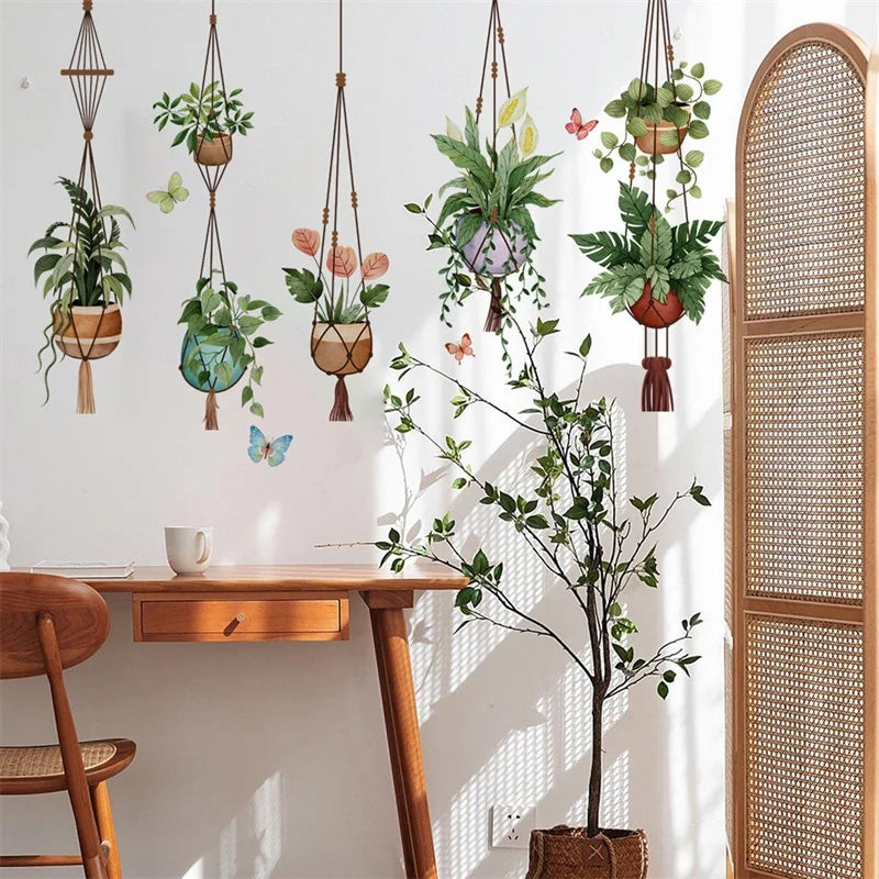 Green Leaf Garland Wall Decal – Botanical Hanging Plant Art for Spring & Summer Home Décor