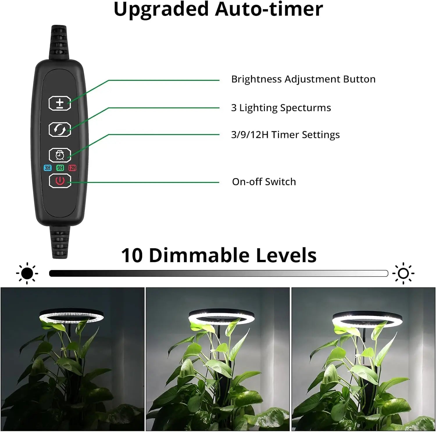 Built-in timer with multiple cycle options (e.g. 4H/8H/12H) – automatic daily lighting