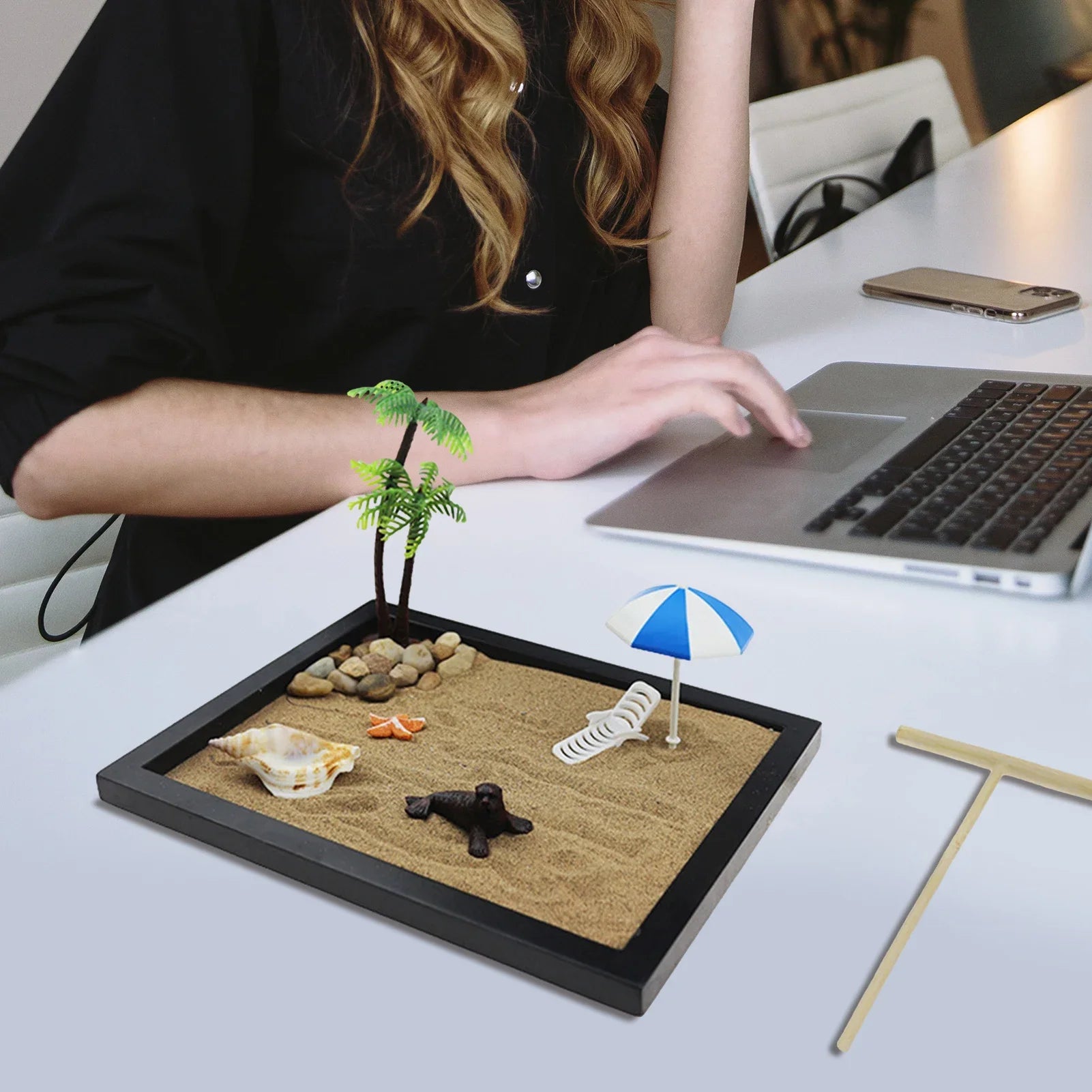 Japanese Zen Sand Garden – Mini Desktop Ornament Kit for Office & Home Décor