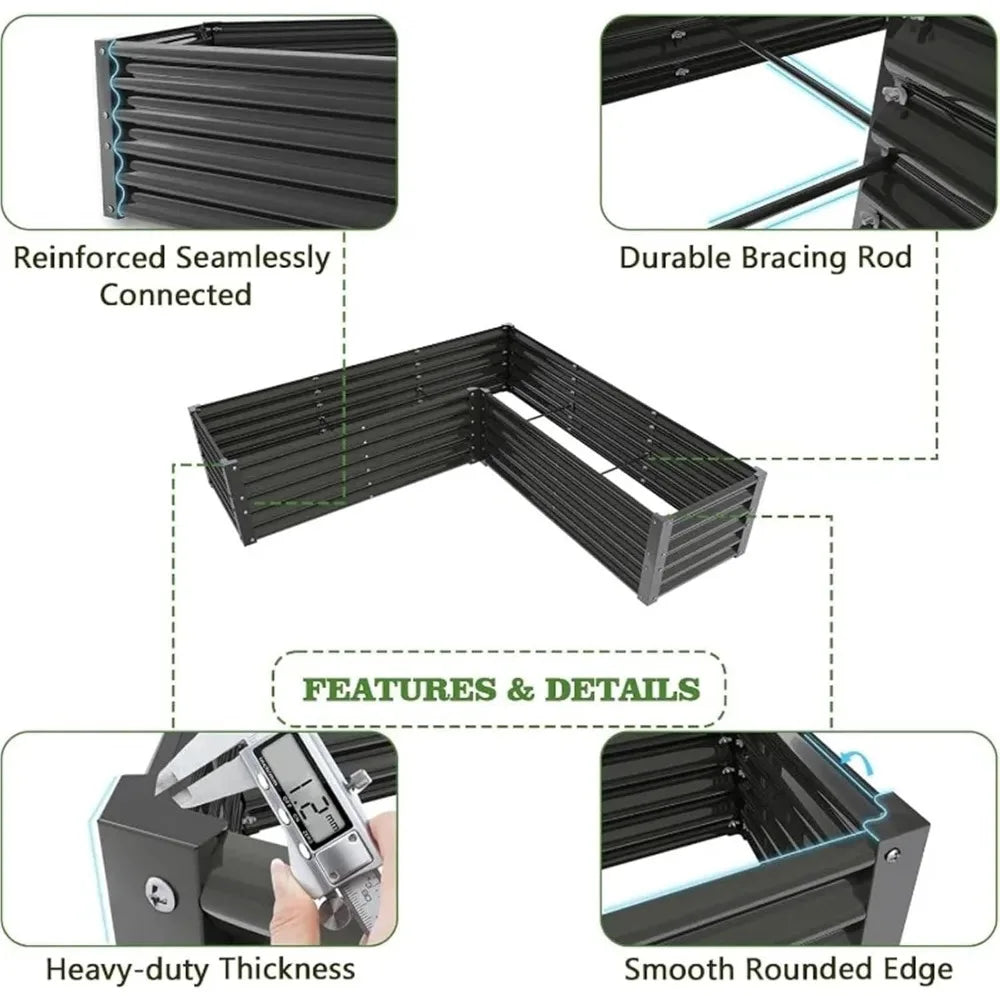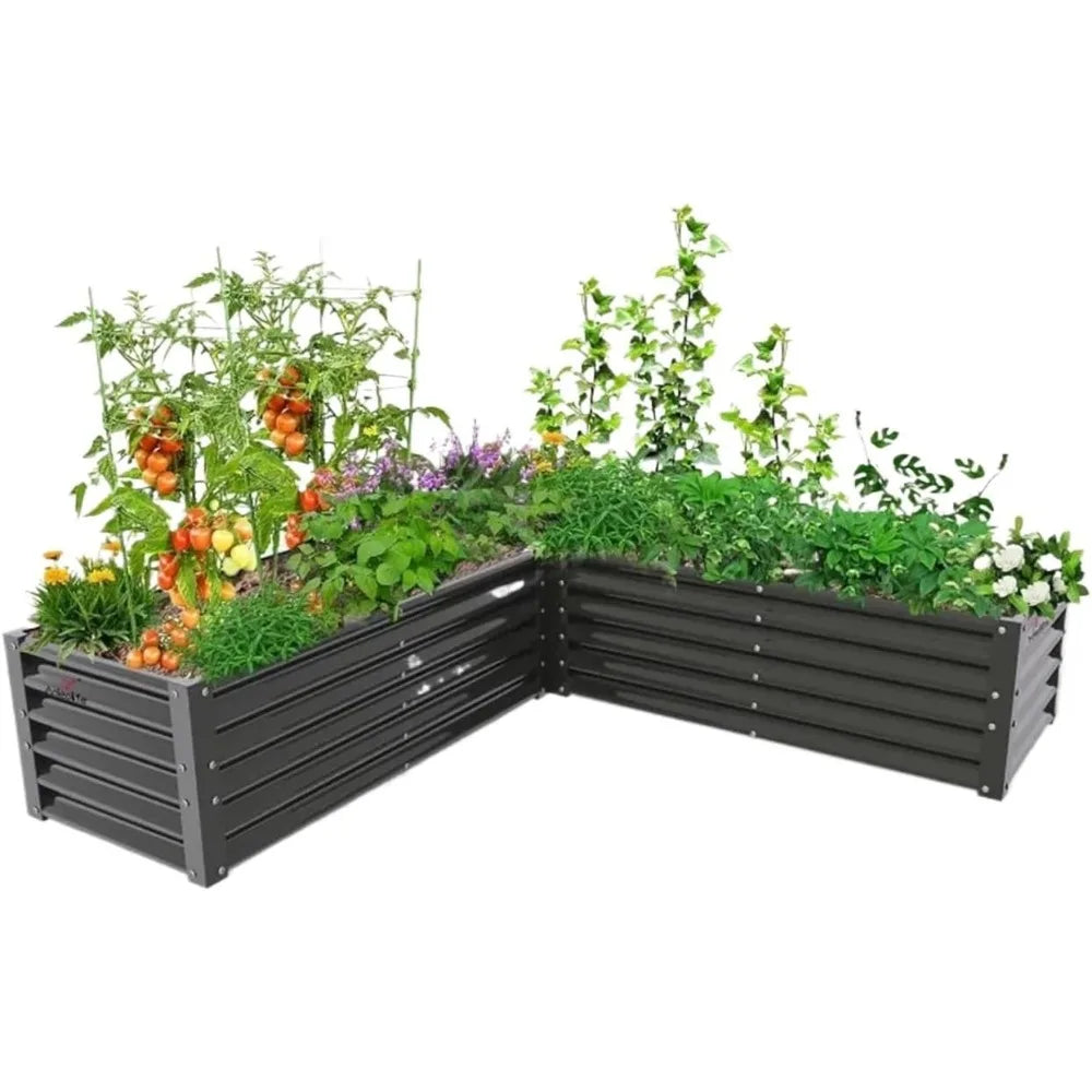 Grow more in less space with this large L-shaped galvanized raised garden bed — a sturdy and spacious solution for planting vegetables, flowers, and herbs in your backyard or patio.