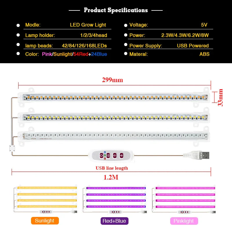 LED Grow Light Bar – 30cm USB 5V Full Spectrum Phytolamp for Indoor Plants
