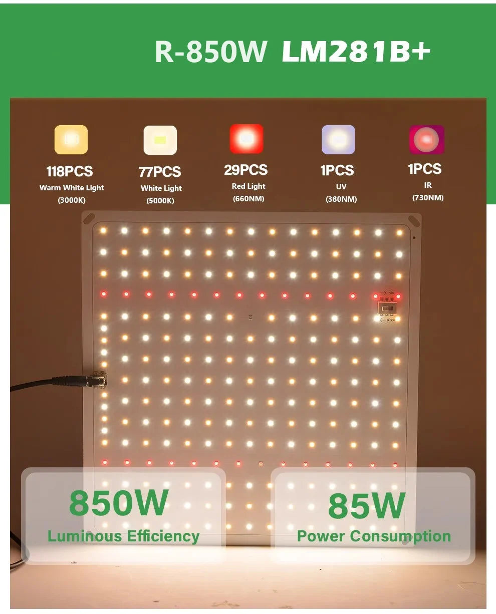 Premium-grade aluminum heat sink, Samsung LM281B LED chips, durable PCB board, and full spectrum LED array for optimal plant growth.