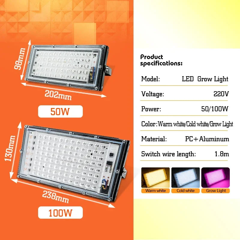Enhance your indoor gardening with this powerful LED grow light — available in 50W or 100W options, offering full-spectrum lighting ideal for hydroponics, vegetables, and flowering plants.