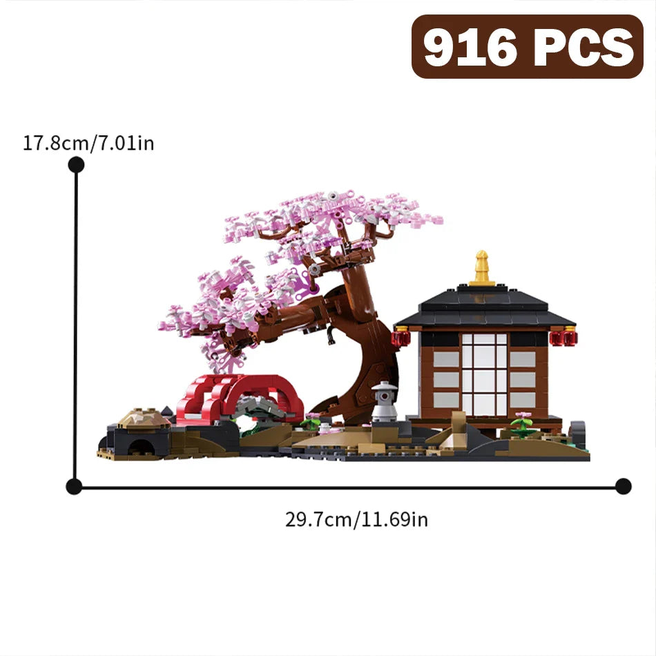 MOC Cherry Blossom Zen Garden Building Blocks – Japanese Sakura Tree House Architecture Brick Set
