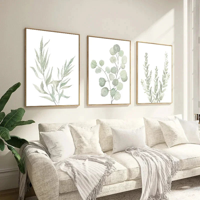 Bring nature indoors with this Nordic Sage Green Plant Wall Art, featuring elegant eucalyptus leaves in soft watercolor tones — a serene and stylish touch for any modern space.