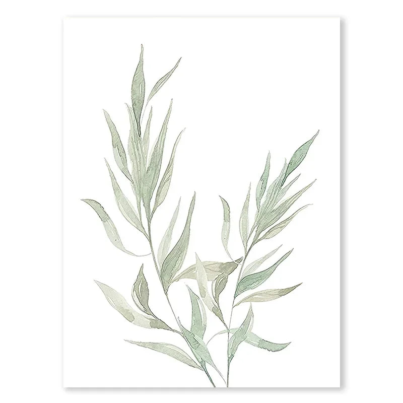 Nordic Sage Green Plant Wall Art – Minimalist Eucalyptus Leaf Watercolor Canvas Prints
