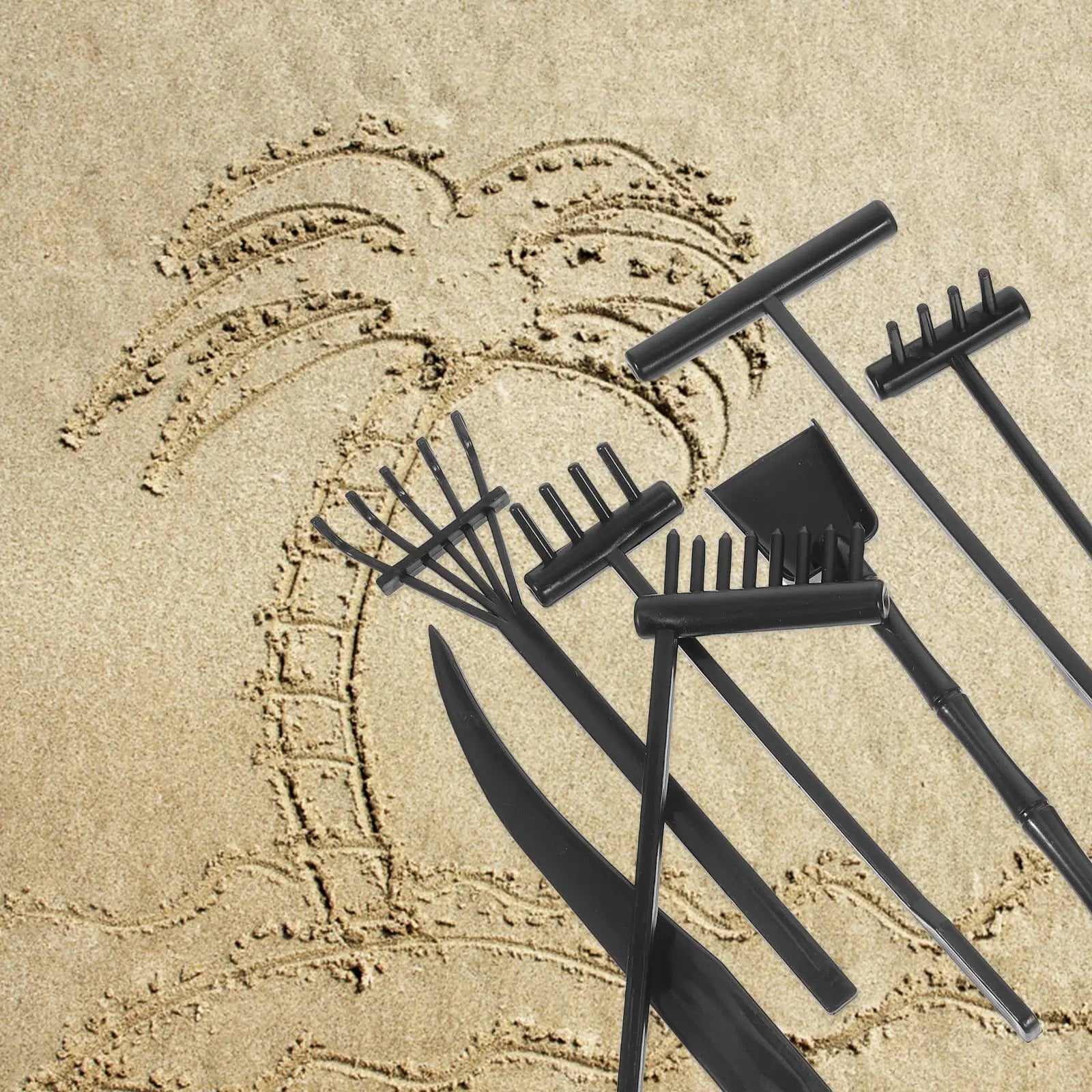 Compact mini rake figurine – ideal for shaping patterns and waves in sand