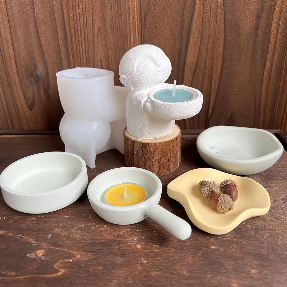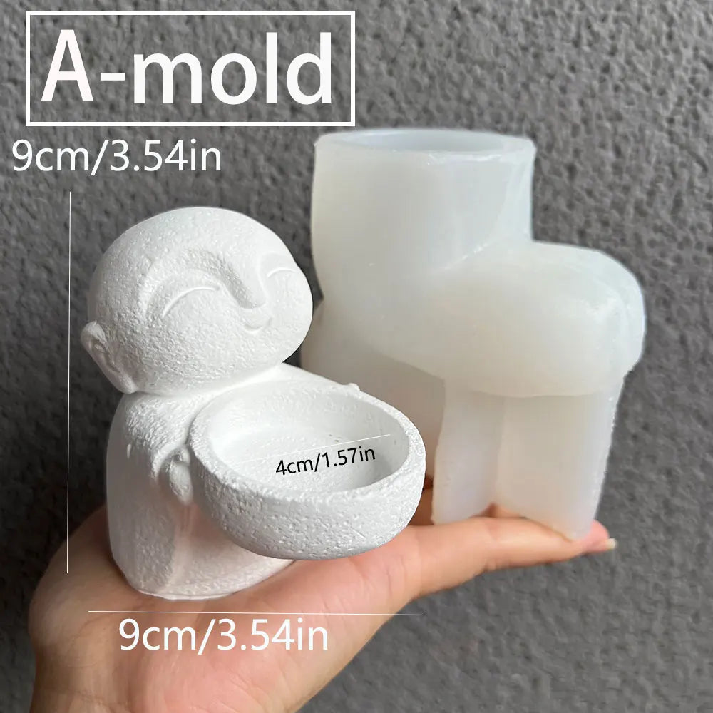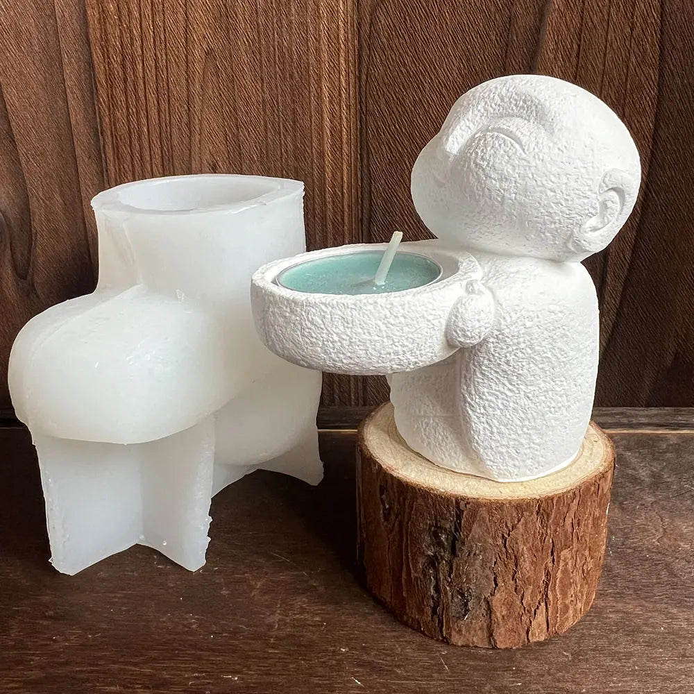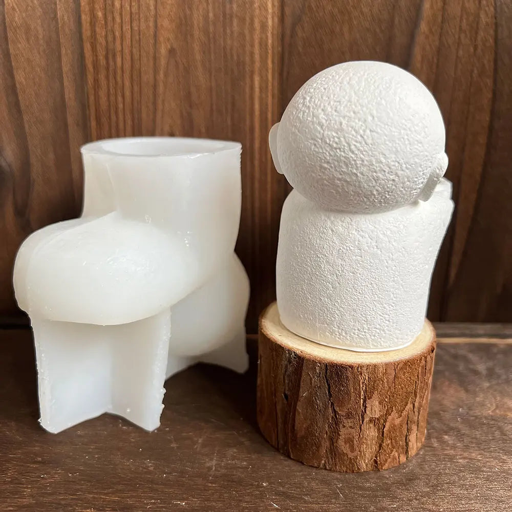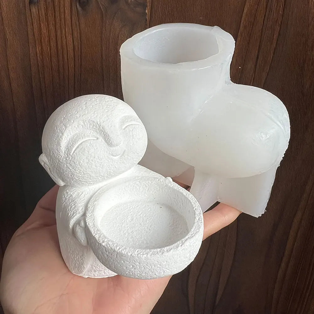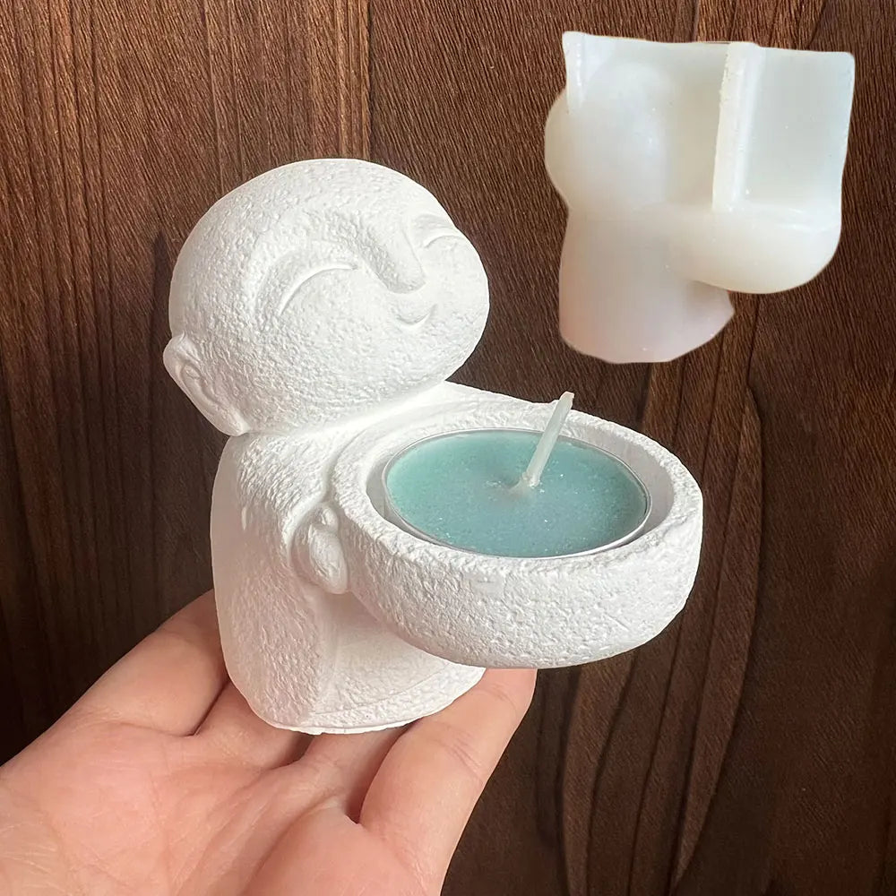 Zen Little Monk Candle Holder Mold – Meditation Candlestick Silicone Mold for DIY Resin, Gypsum, and Concrete Crafts